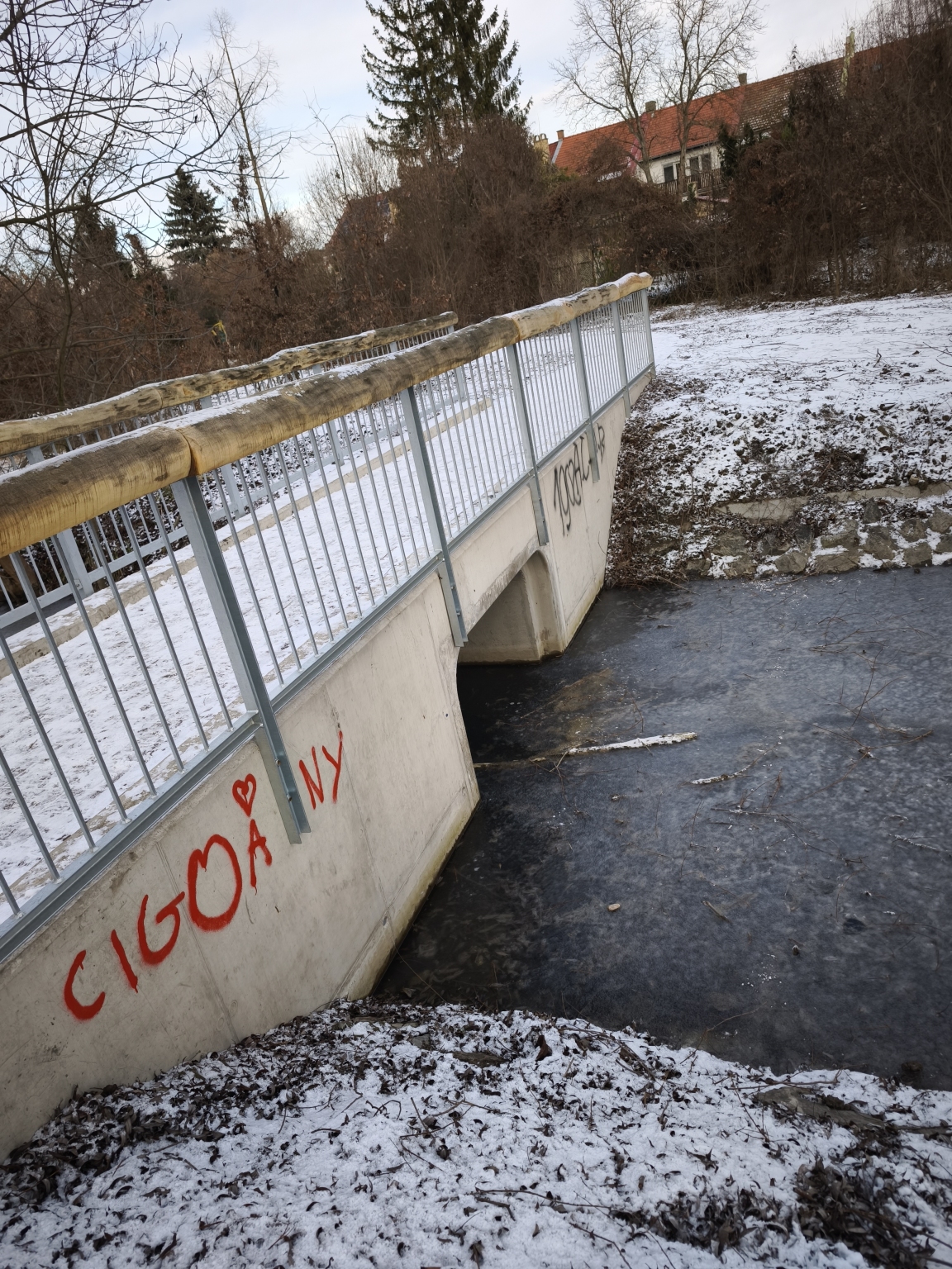 Sajnos máris összegraffitizték a nemrég átadott józsai futópálya hídját a Tócó-patak felett.