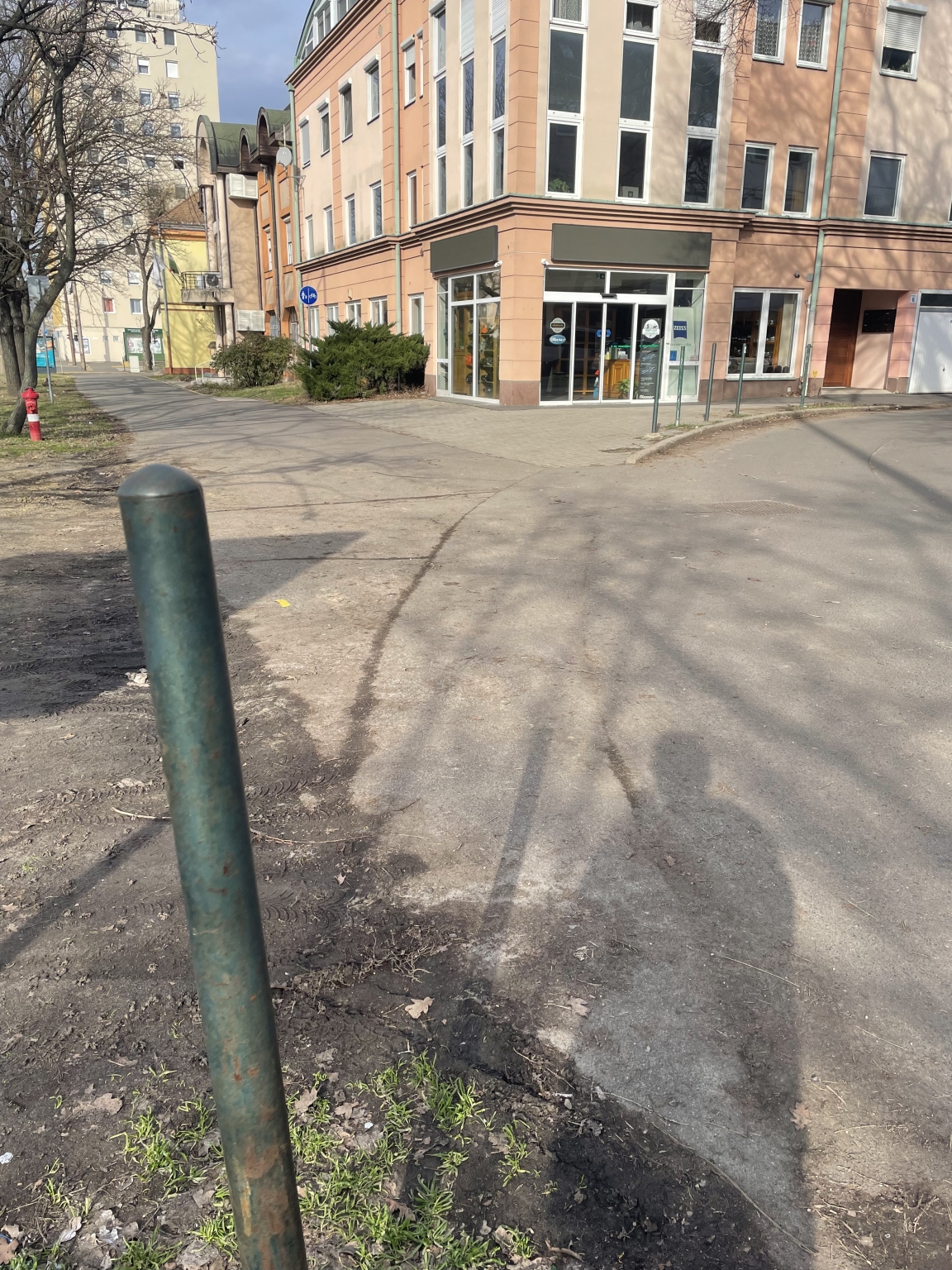 Ahogy a mellékelt képeken is látszik, itt korábban járdát védő oszlopok voltak amiket kidöntöttek. Ennek pótlását szeretném elérni.