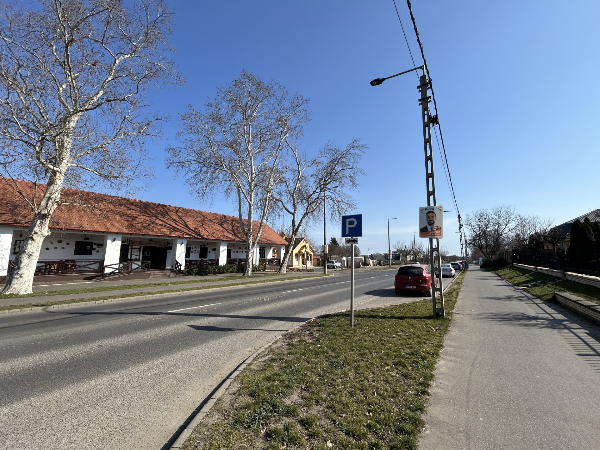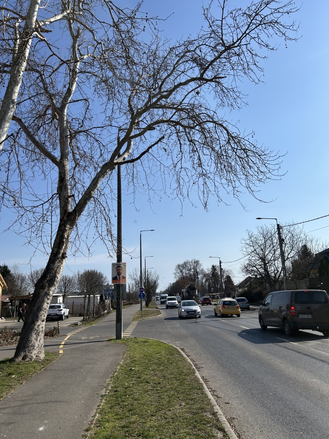 A 35-ös főúton a Rózsás Csárda előtt lévő 3 db platánfa közül különösen az egyik nagyon megdőlt. Előbb utóbb ha lesz egy vihar és kiborul, a főutat elzárja és a villanyvezetékeket leszakítja. Olyan nagyméretű a fa, hogy a villanyoszlopokat is elboríthatja. Nem gondolom, hogy ki kellene vágni, de a magasságán kellene jelentősen csökkenteni, így viszont a szomszédos fákból is vágni kellene, hogy az utcakép normális legyen. Ha az illetékesek is így látják, jó lenne a fészkelési idő előtt elvégezni a munkákat.