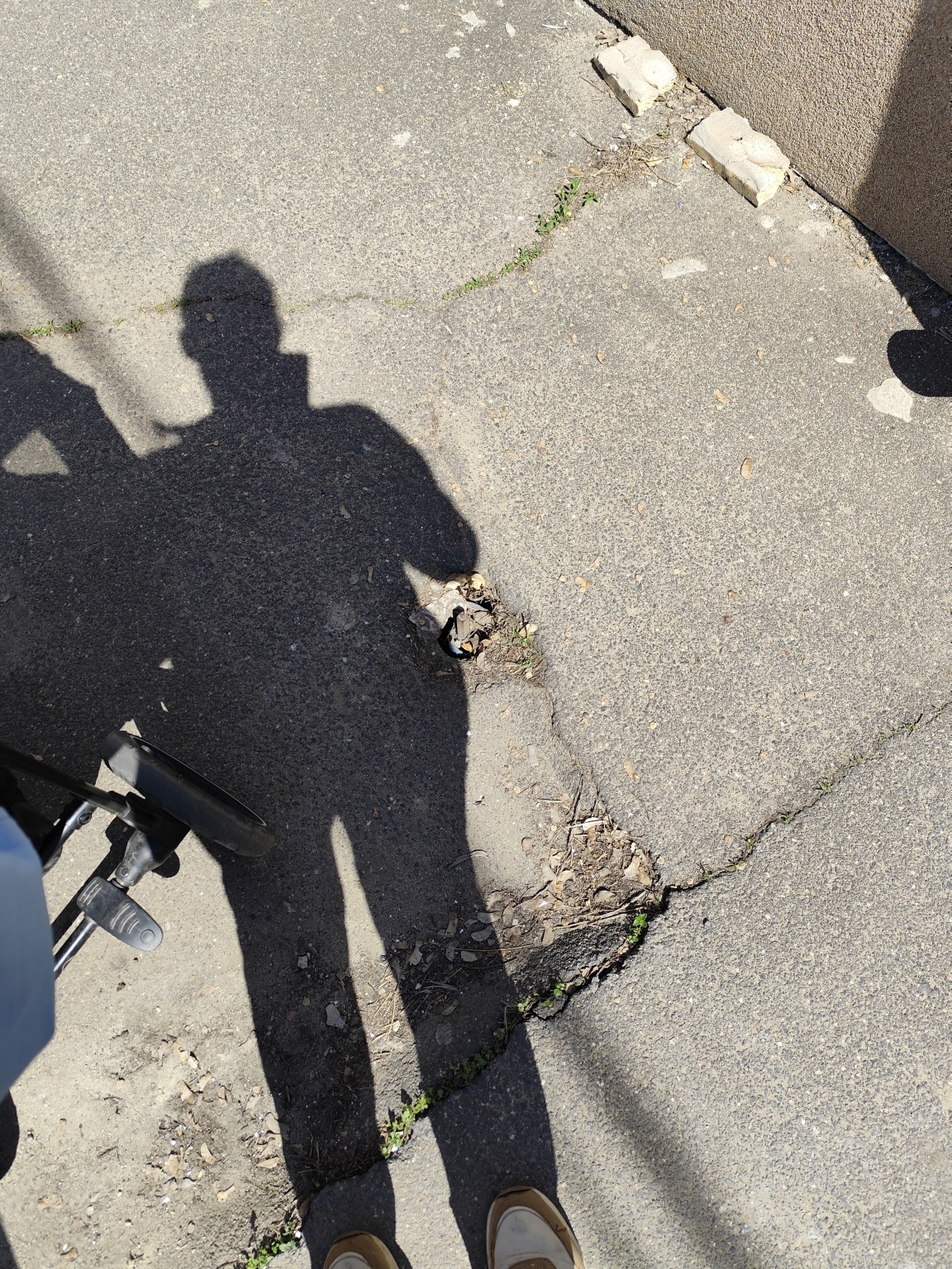 Balesetveszélyes úthiba és járdafelület-beszakadás