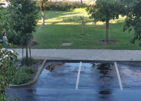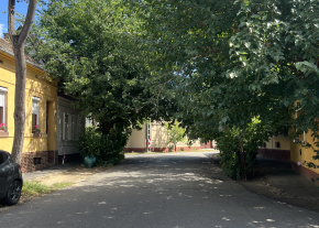 Kidőlt fa az utcán, a július eleji országos vihar után egy hónappal