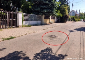 Kérem, hogy a Diósd, Homokbánya u. 83.b társasház előtti úttest és vízelvezető árok között a csapadékvíz által kialakított nagyméretű és balesetveszélyes gödörrendszert az úttest szintjéig visszatölteni szíveskedjenek és vízfolyásbiztos felület kialakításával a további eróziót akadályozzák meg! Legutóbb is kiemeltem, hogy a vízkimosás ellen védett felületet kell létrehozni az ismétlődés elkerülése érdekében.