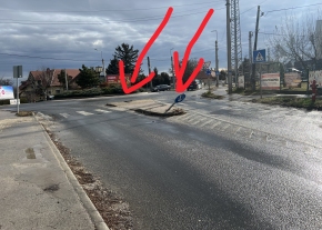Roncsolódott a védőkorlát a Petőfi-Berzsenyi sarkon. Balesetveszélyes.