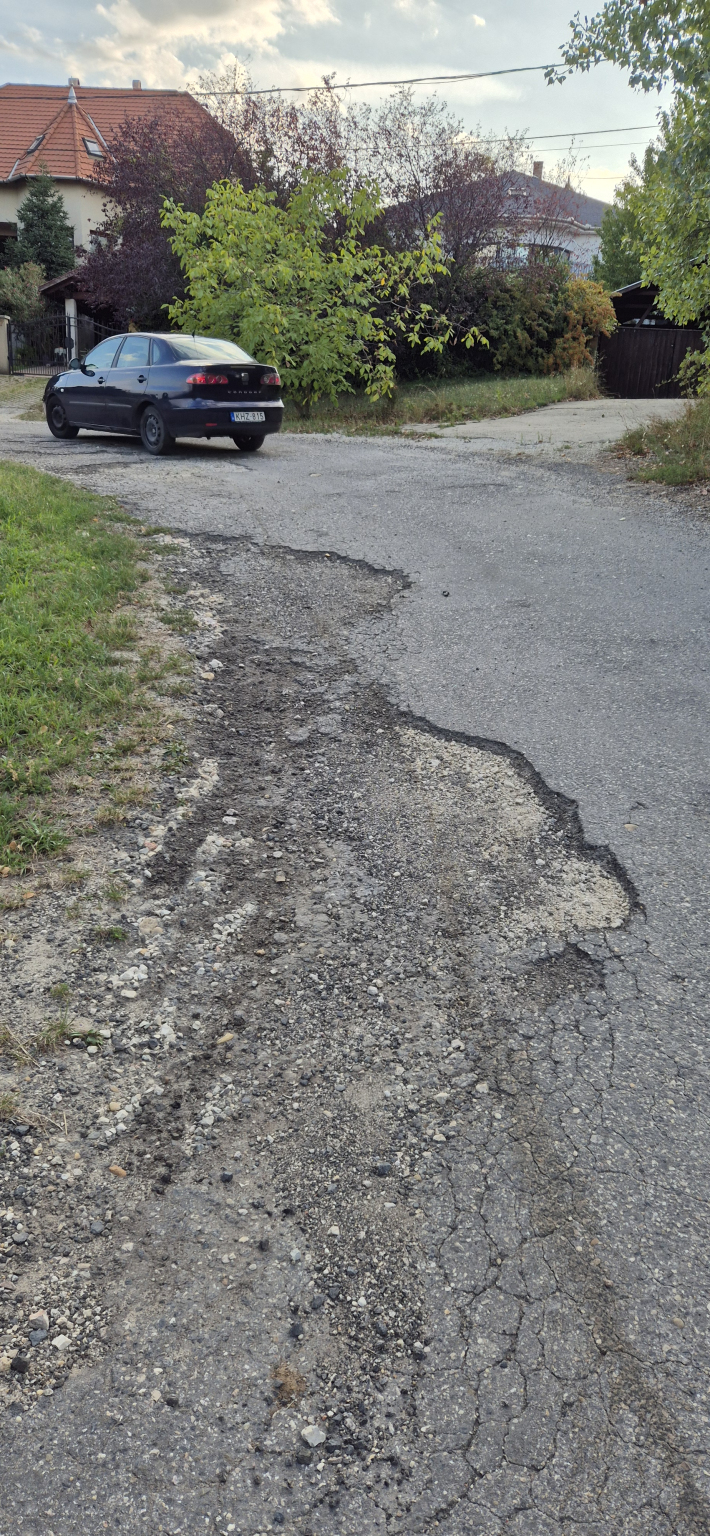 A Székely András úton az útburkolat tönkrement, elhasználódott. Az út minősége az autóval , gyalogosan a járhatatlanhoz közelít
