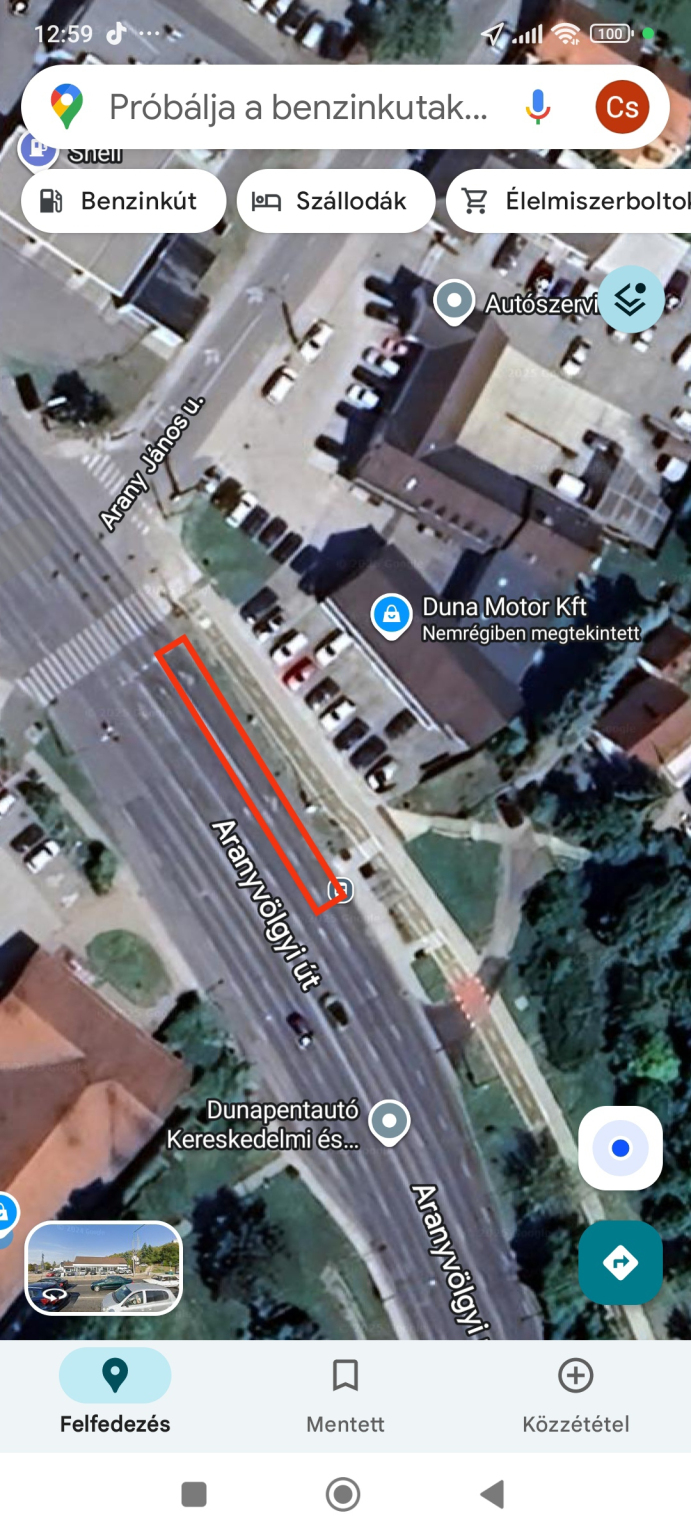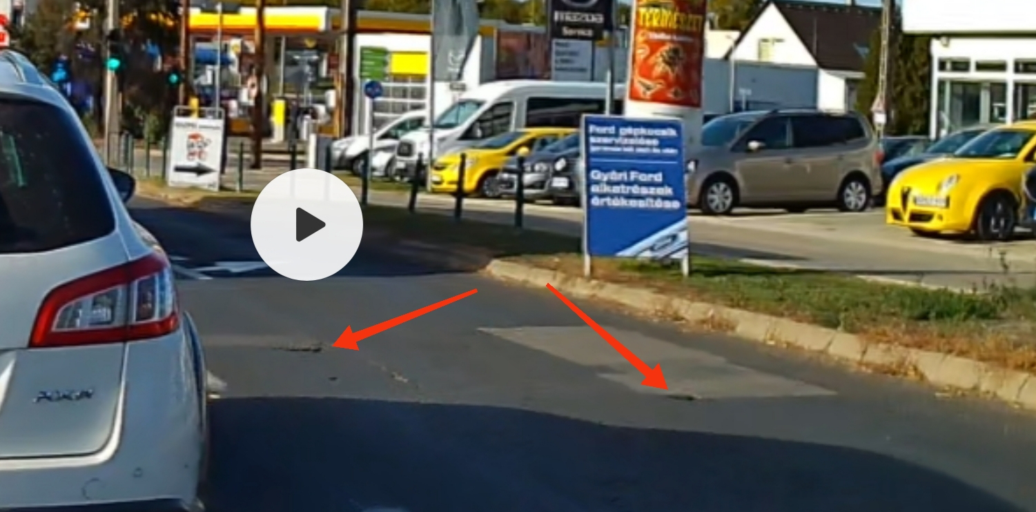Dunaújváros, Aranyvölgyi úton a Duna Motor Kft. (Mazda Szalon) előtti szakaszon, a külső sávban több darab kátyú található!