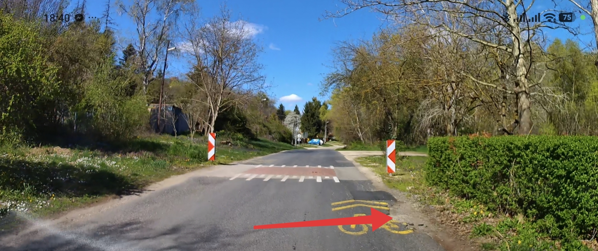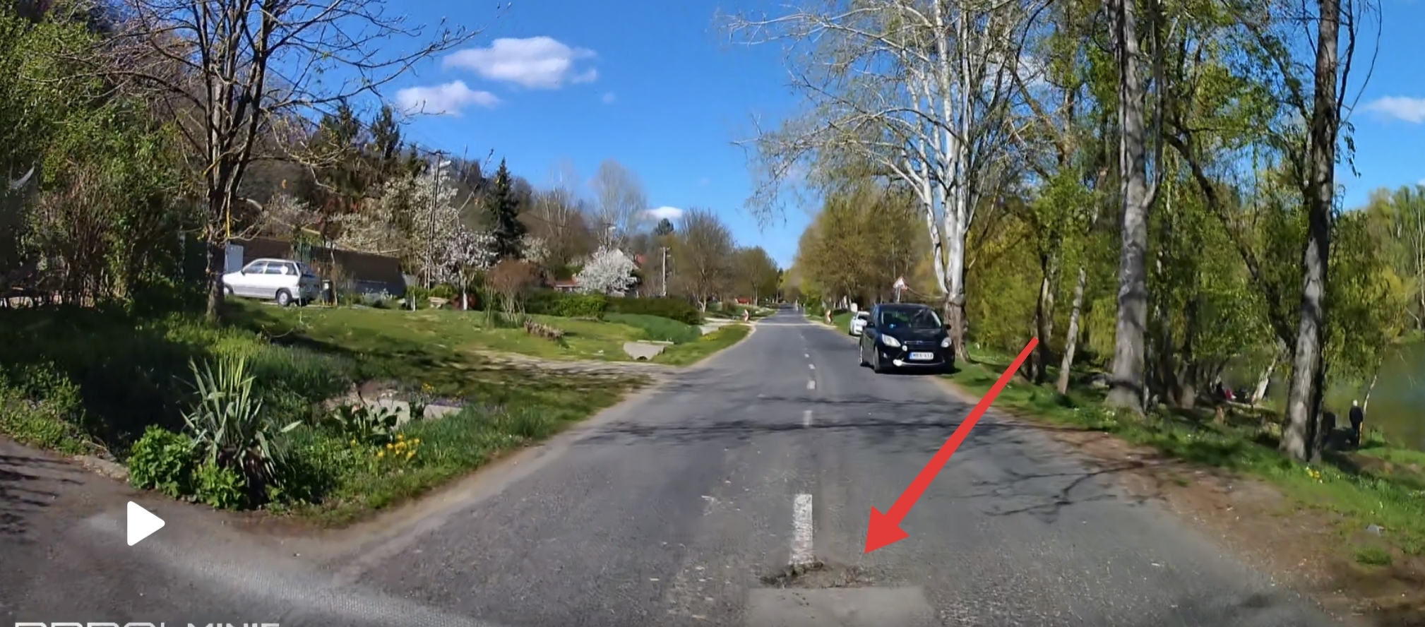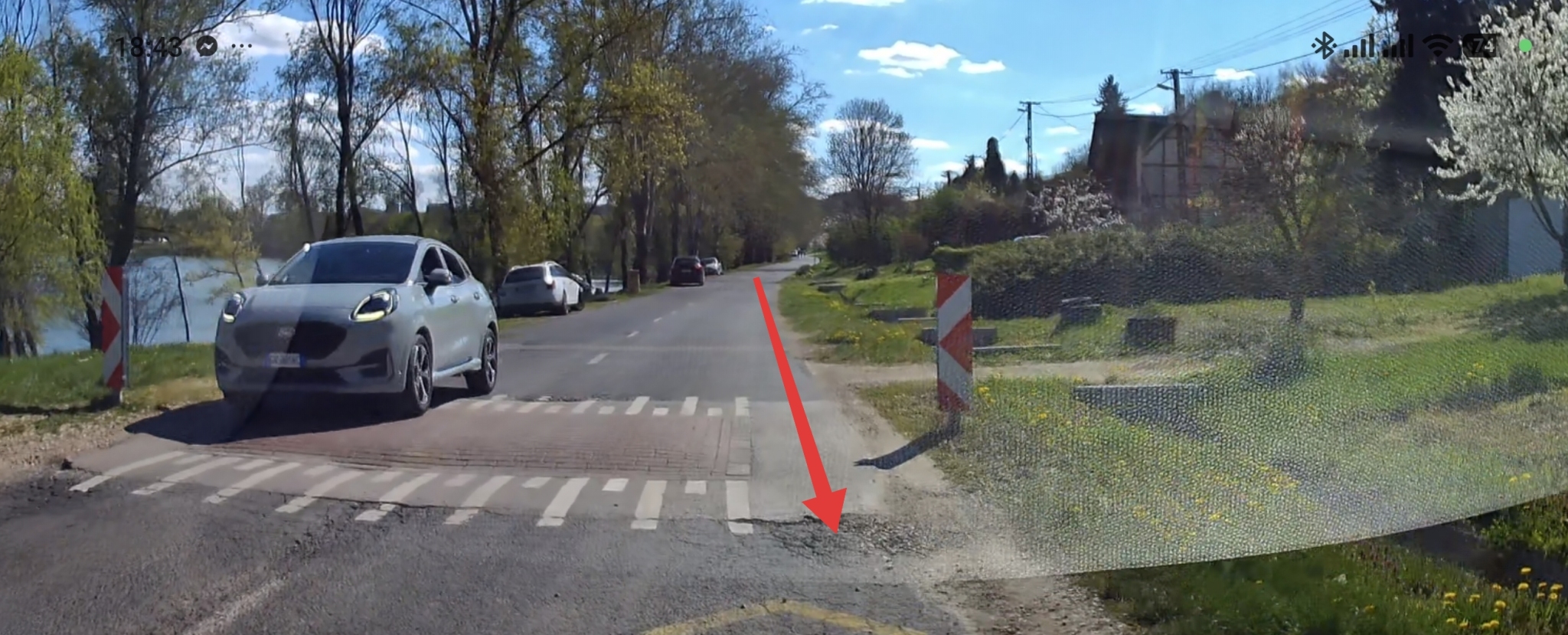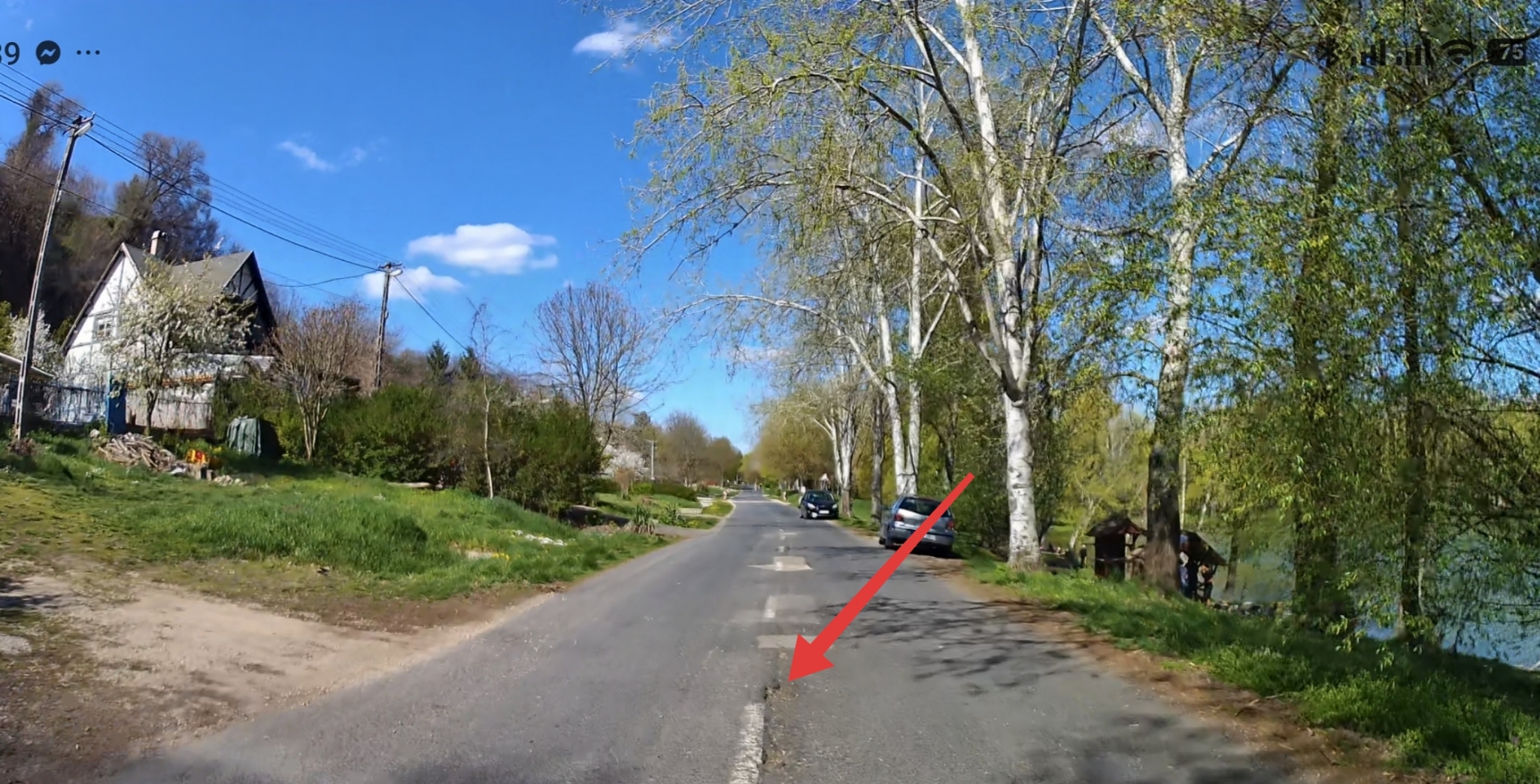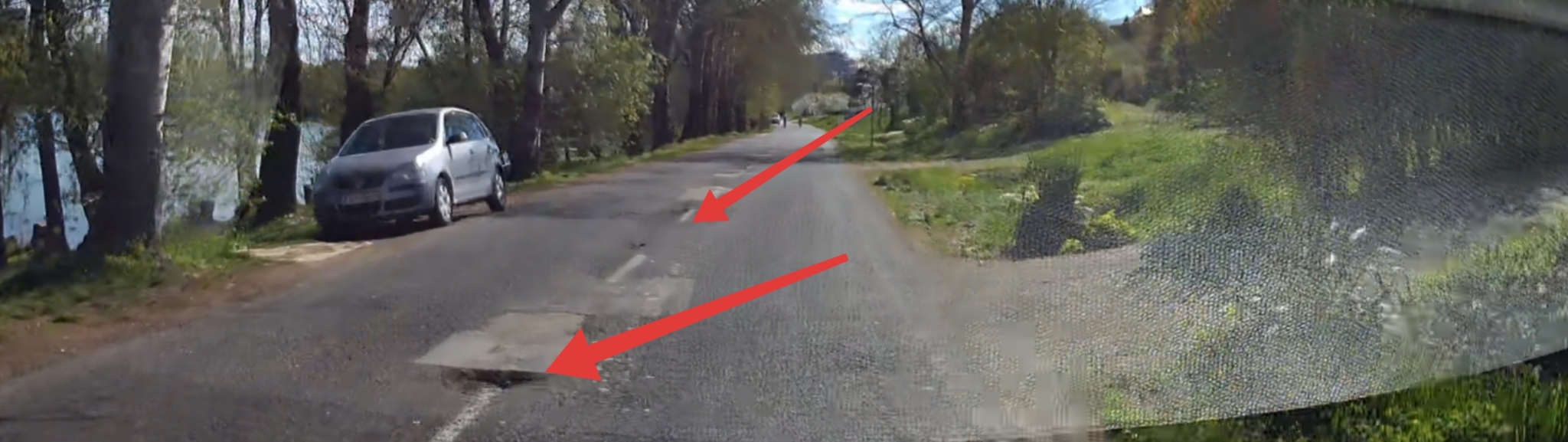 Dunaújváros, Üdülősor, város irányából a második fekvőrendőrtől a Barsi Dénes útig, nagyon sok kátyú található a felezővonal mentén, illetve az úton, útszéleken is!