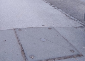 Az Aranyvölgyi út Apáczai utca kereszteződésénél kilyukadt az akna fedlapja. Ez így balesetveszélyes.