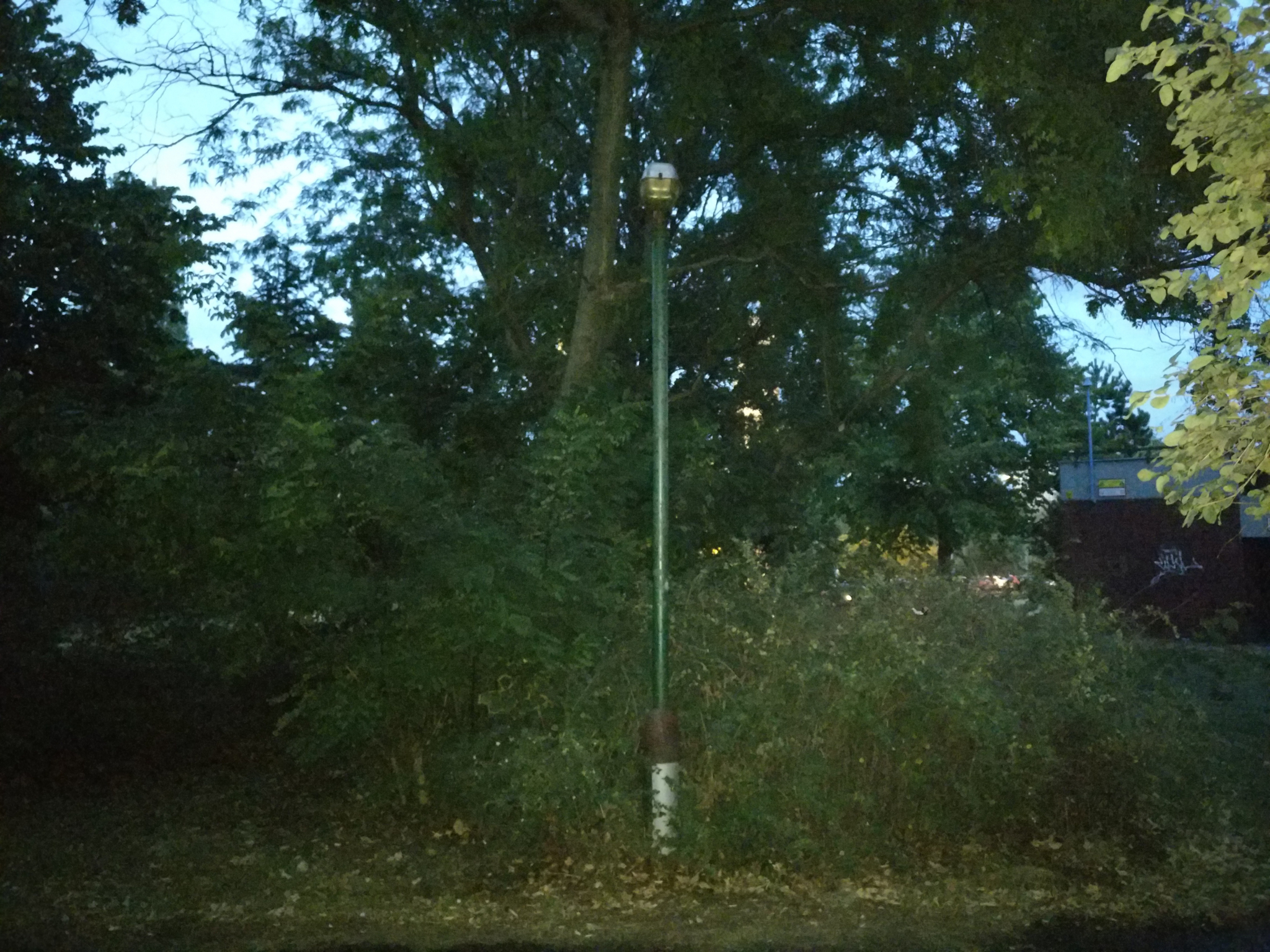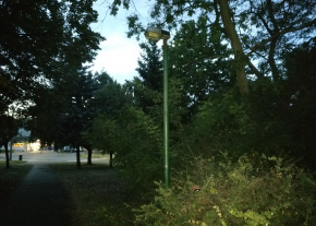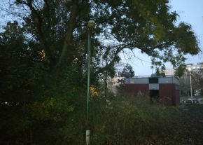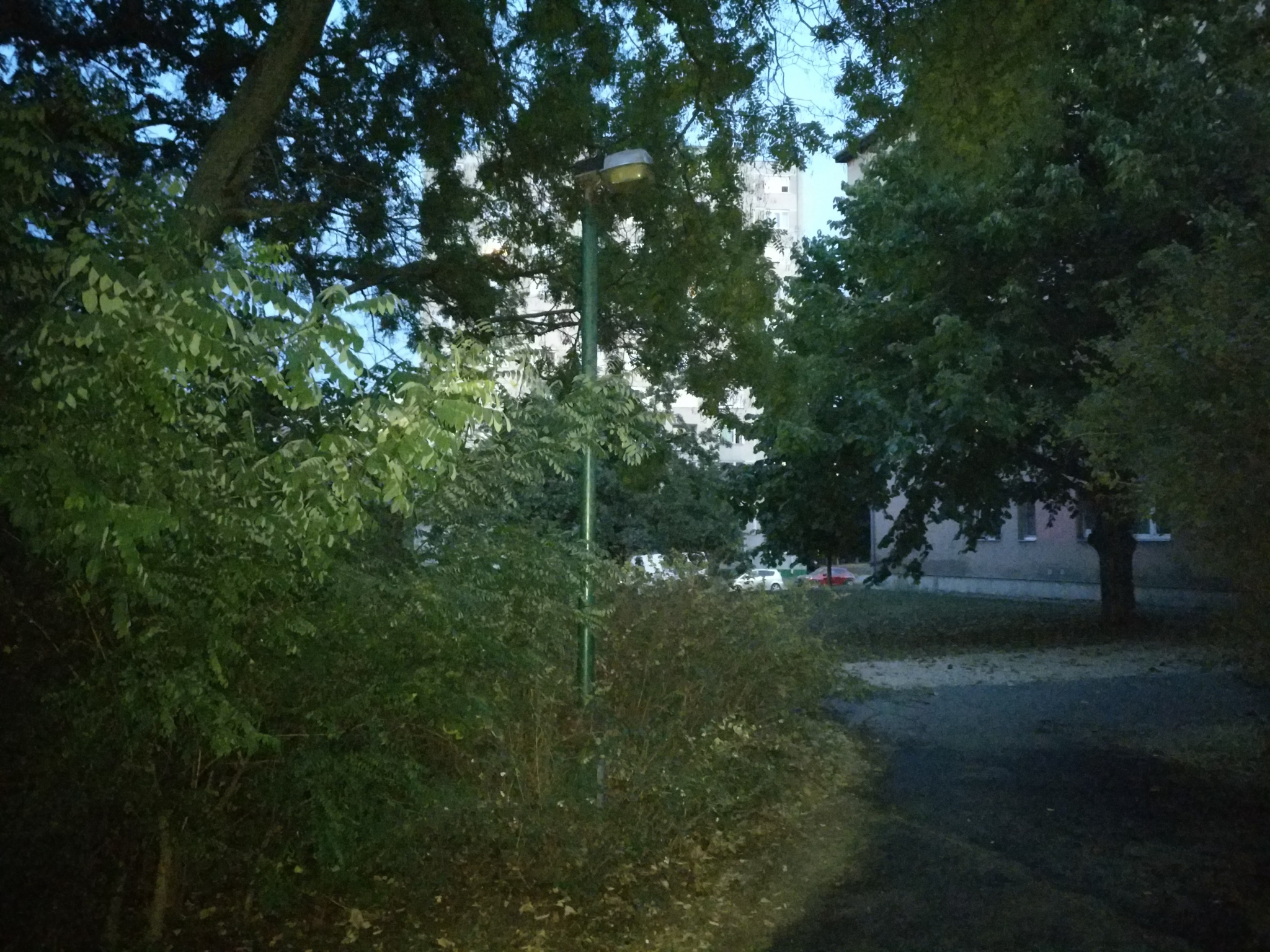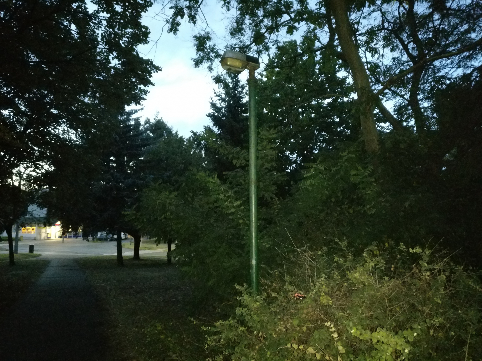 A Táncsics Mihály utca és a Szórád Márton út közötti, velük párhuzamosan futó járda melletti egyik lámpaoszlop nem világít.