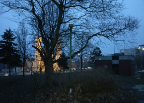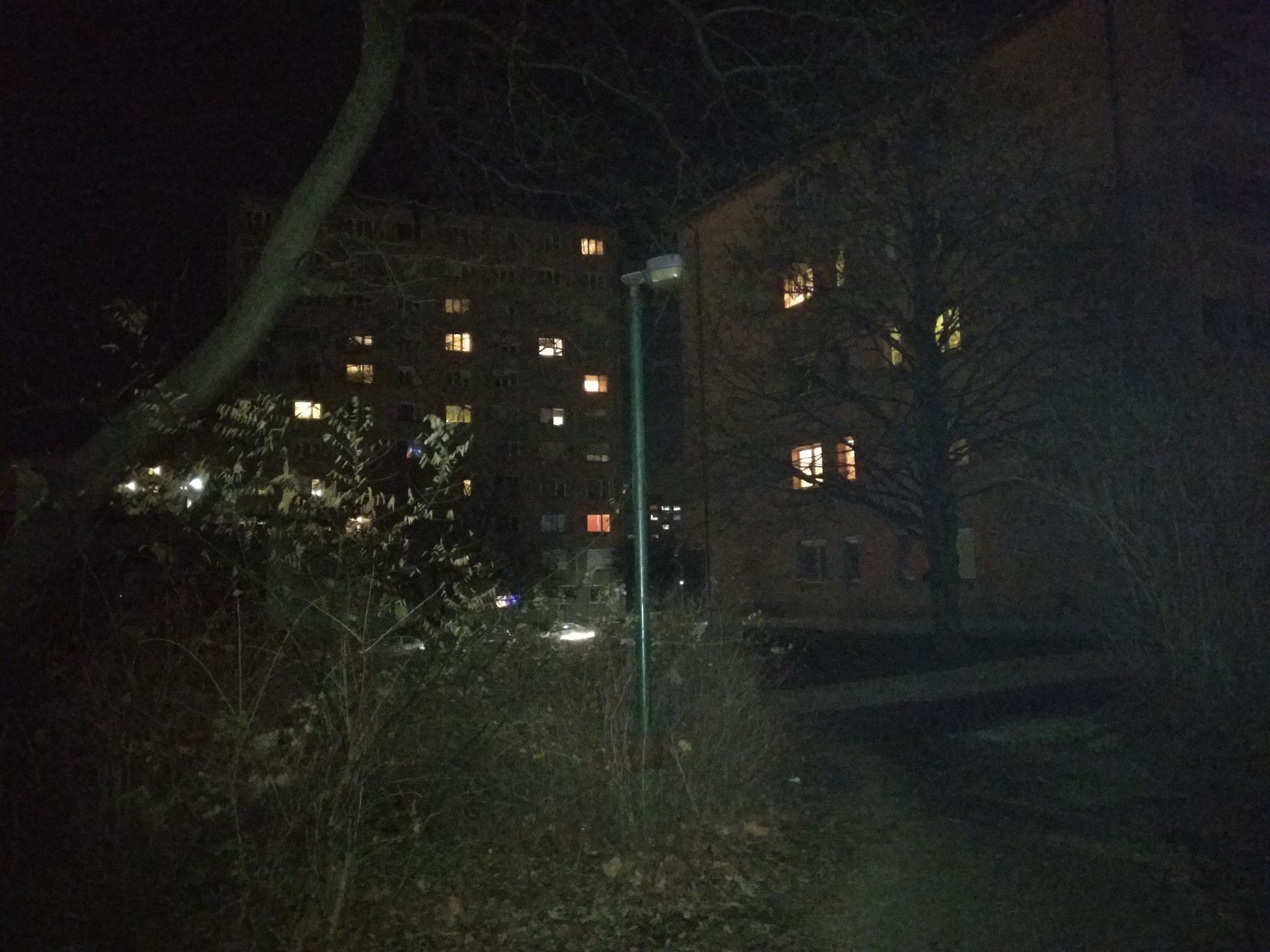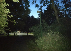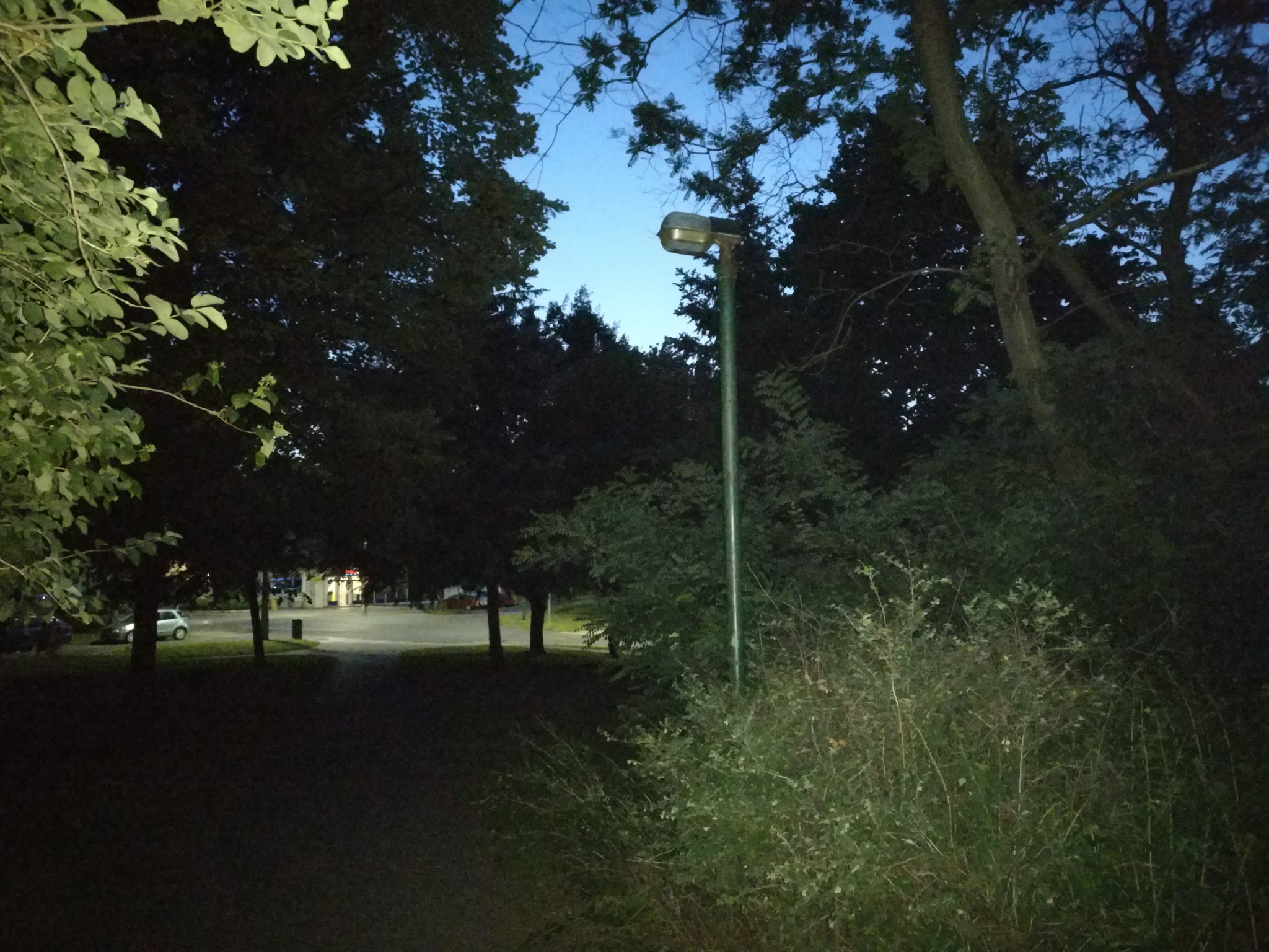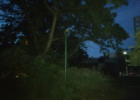 A Táncsics Mihály utca és a Szórád Márton út közötti, velük párhuzamosan futó járda melletti egyik lámpaoszlop nem világít.