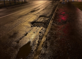 Az Alsó Duna-parti úton nyáron javított kátyú már, komolyabb fagy nélkül is, feladta.