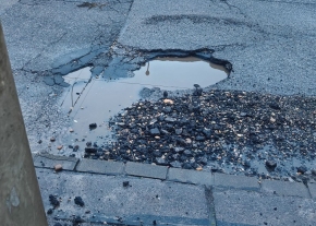 A Dózsa György út és a Kallós Dezső utca kereszteződésében megsüllyedt egy csatornaszem.