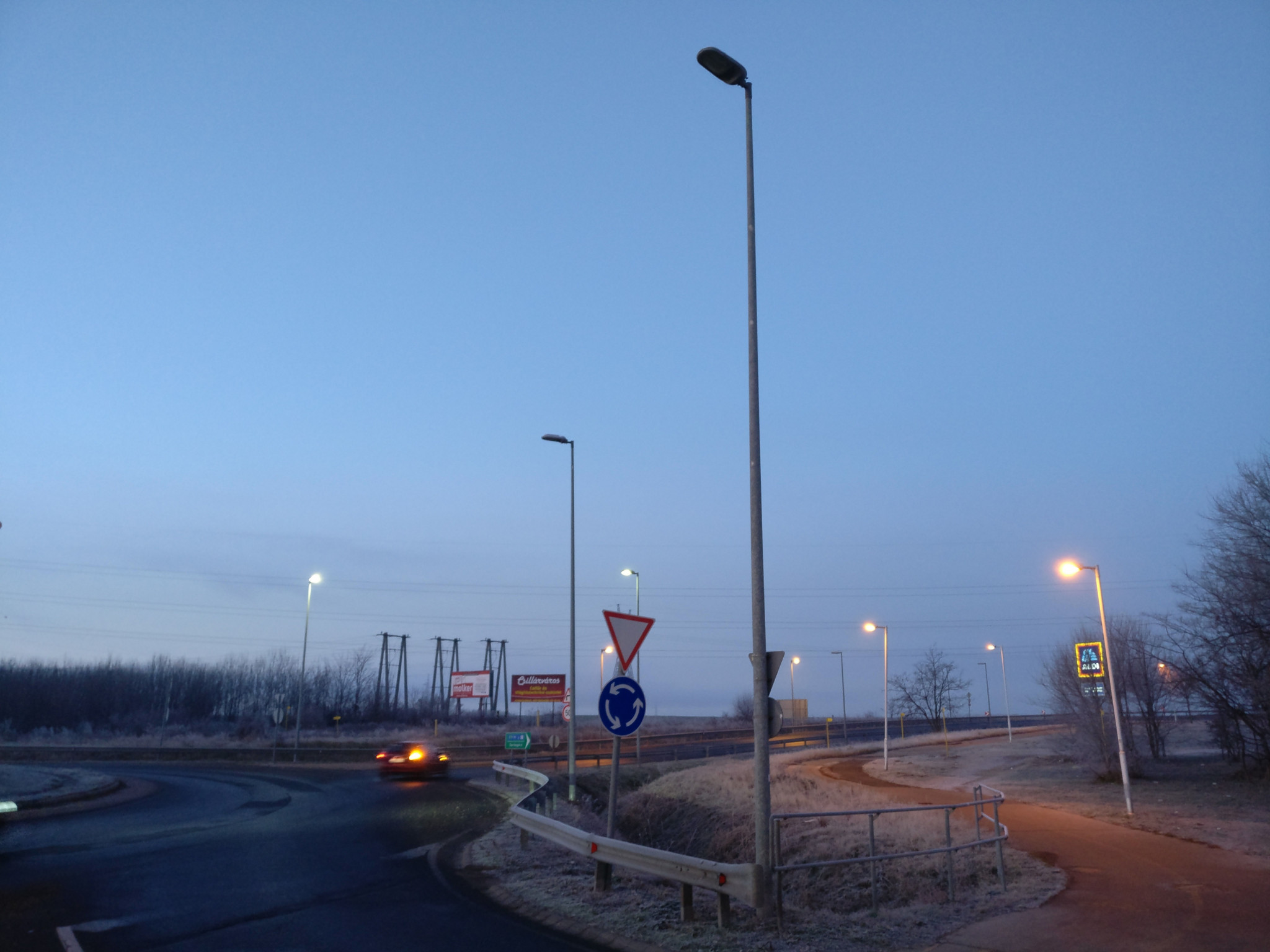 A 6-os főút vasútállomás melletti körfogalmában és az M6-os felé vezető út mindkét oldalán több lámpaoszlop sem világít.
