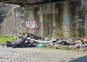 eldőlt szemetes