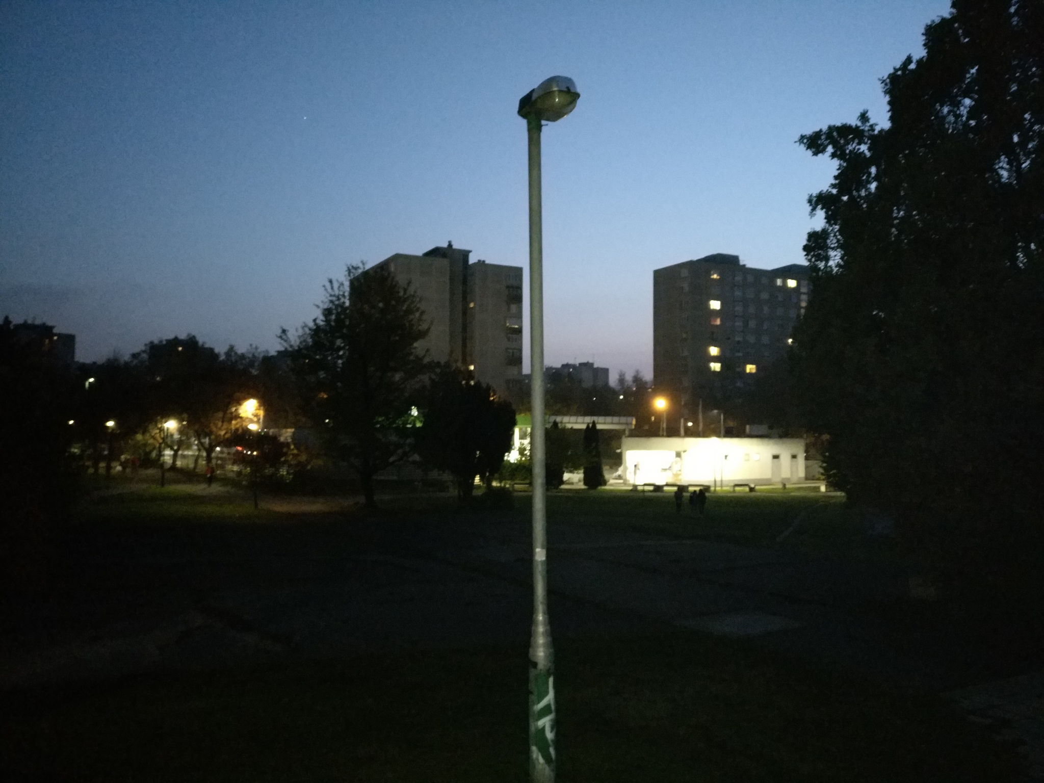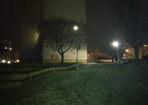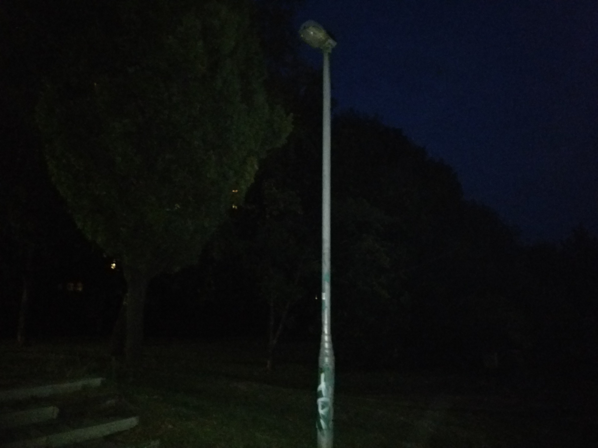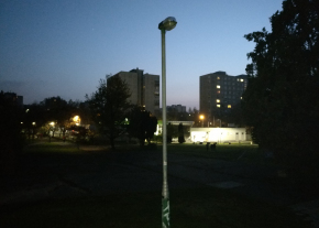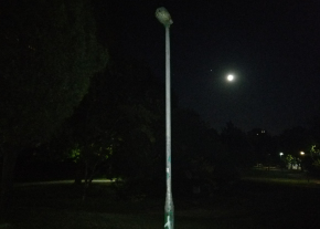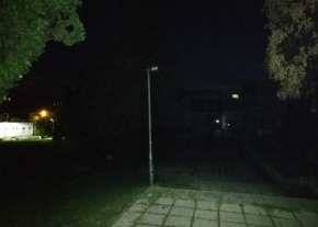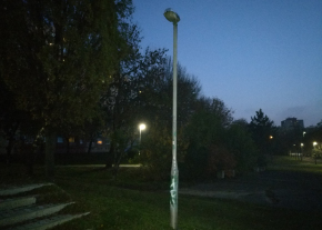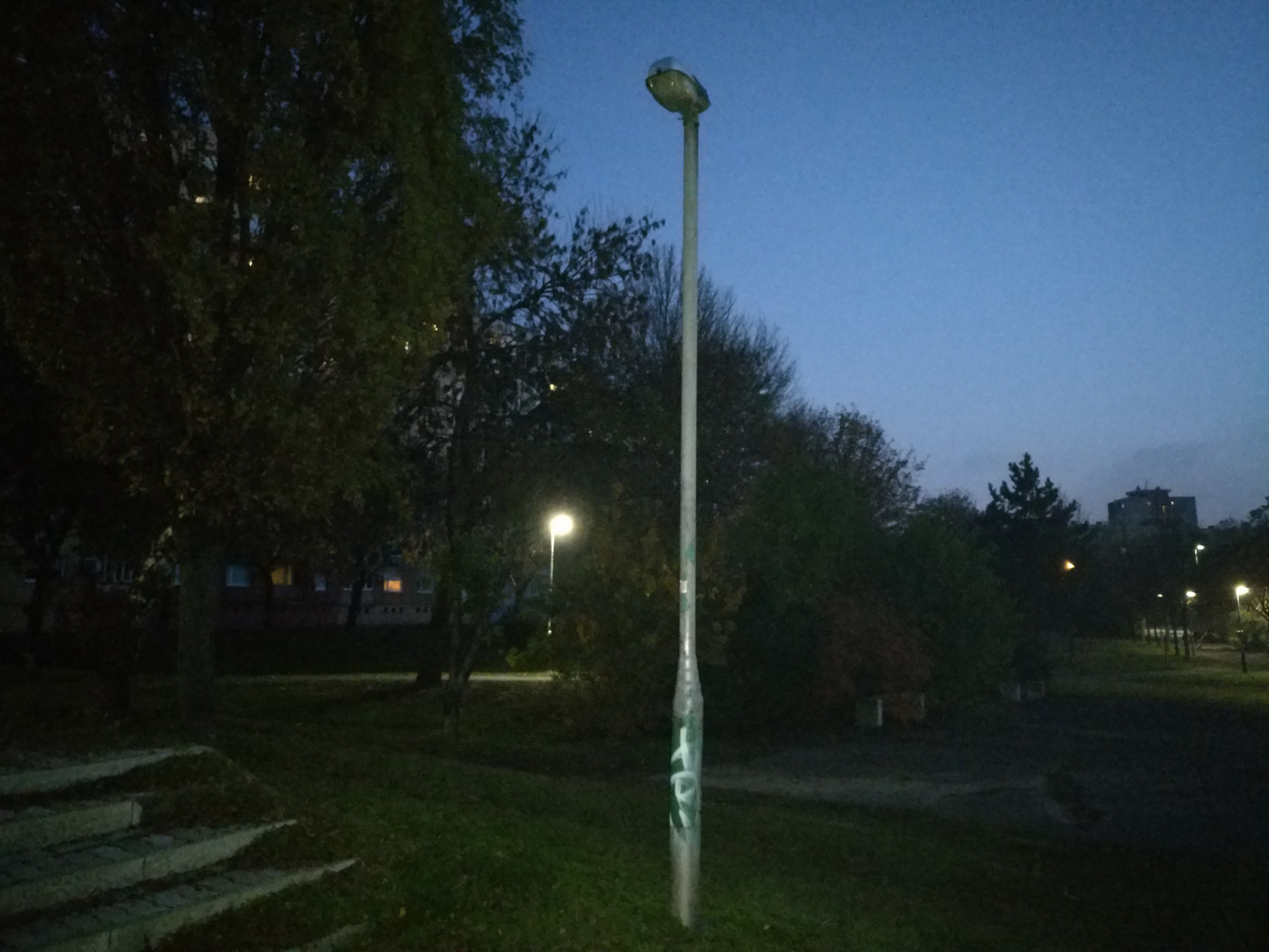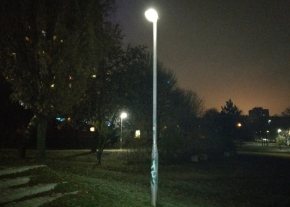 A Vasmű út és az Aranyvölgyi út közötti parkban az egyik lámpaoszlop nem világít.