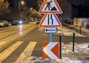 Az Építők útja és a Május 1. utca kereszteződésénél nagyon kopott a zebra.