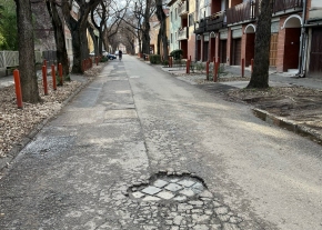 A Petőfi Sándor utcában növekszik egy kátyú.