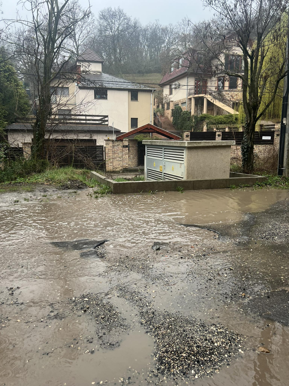 Ennek okáért folyamatos a kátyúk keletkezése az elmúlt egy évben, nincs pár hete, hogy javították a mélyebb lyukakat, de ismét tele lyukkal, állóvízzel, jéggel a lejtő közepén! Kérem a járókelő egyesületet, hogy a problémát az útkezelőn kívül a közműépítőnek is jelezze, mivel amíg a vízlefolyás nem megoldott, addig ez probléma lesz.