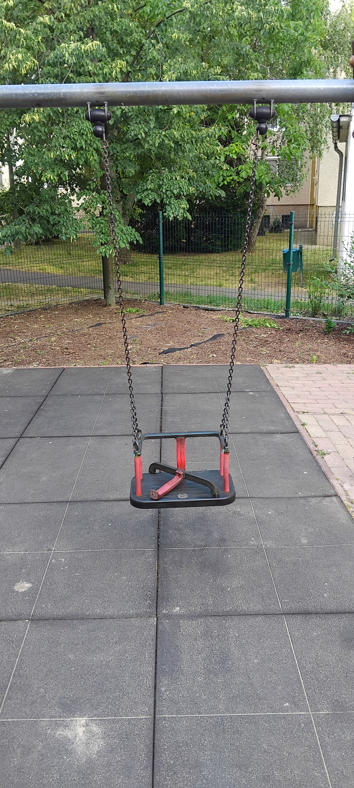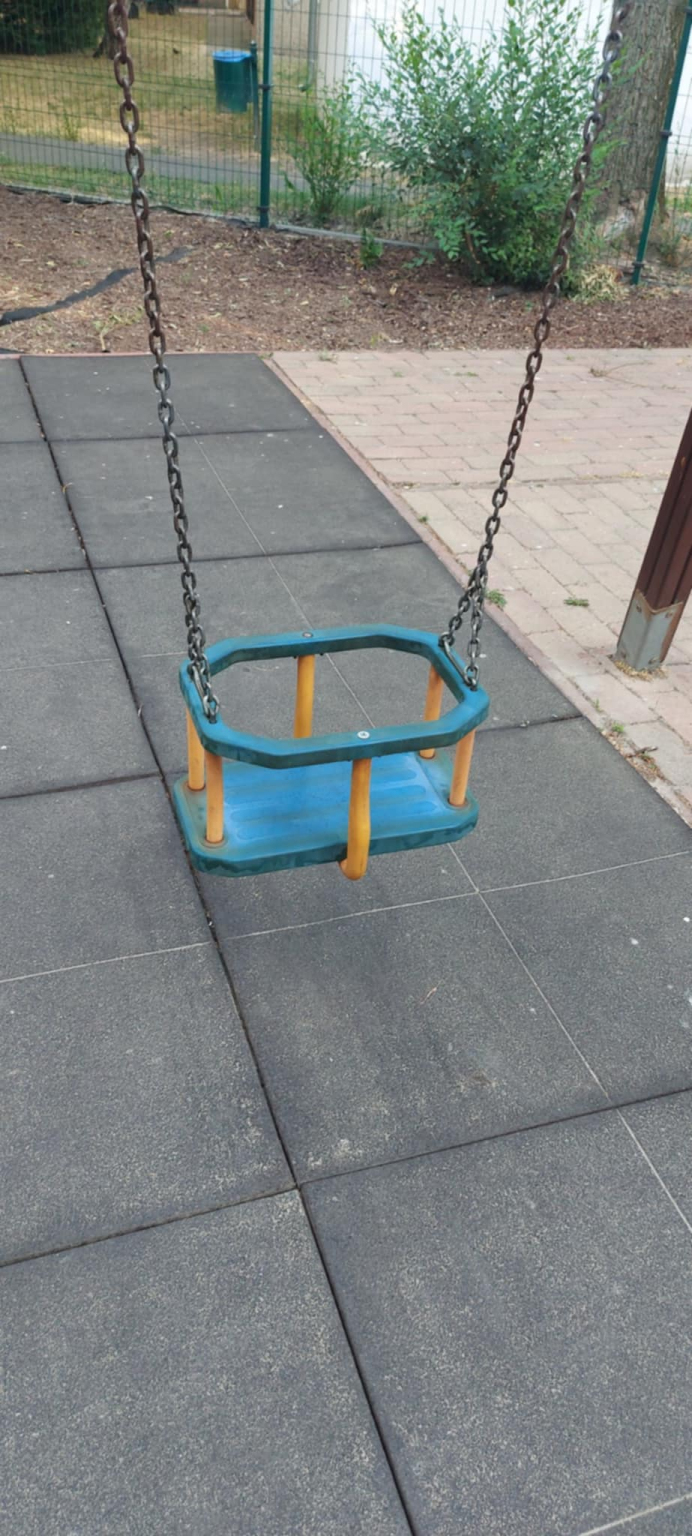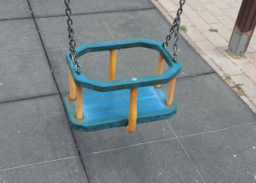 Béke téri kis játszótéren a babahinta eltört.