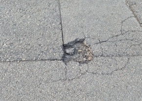 Kátyú a központban az aluljáró felé