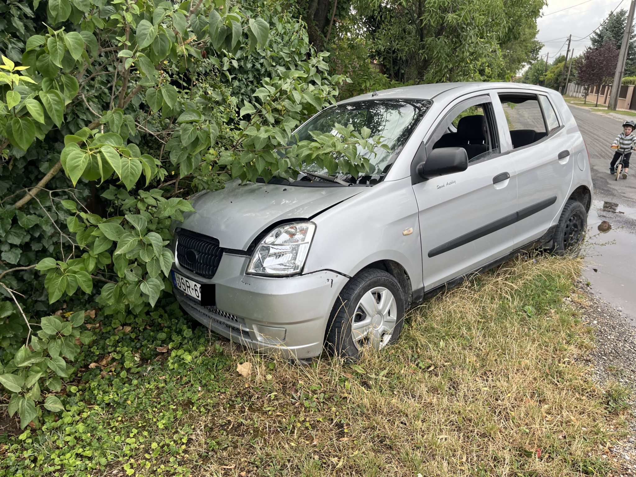 Gyanús autó található a Lipóti és Bihari utca sarkán. Minden ablaka lehúzva, orra majdnem a kerítésben. Rendszám látható.