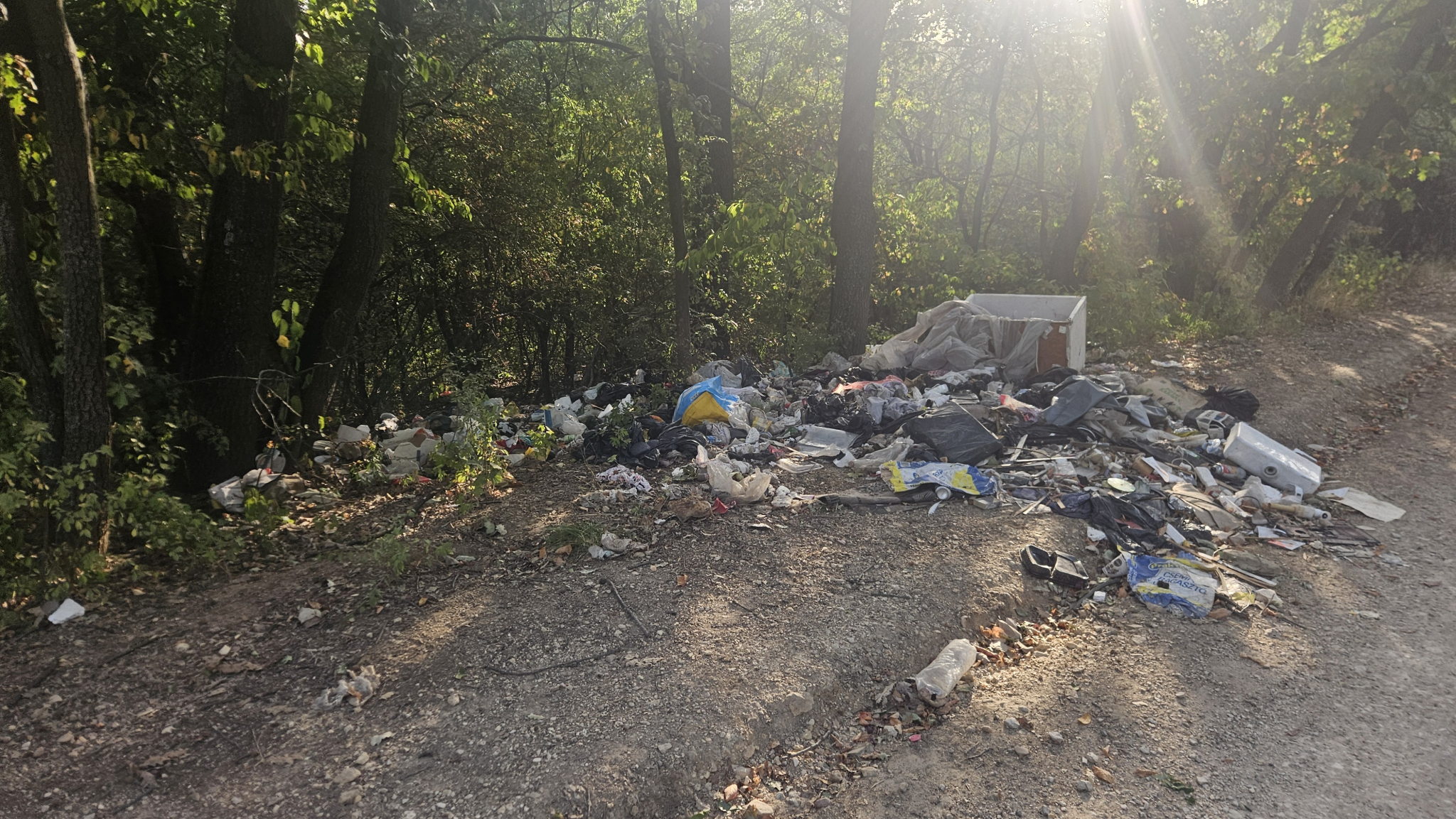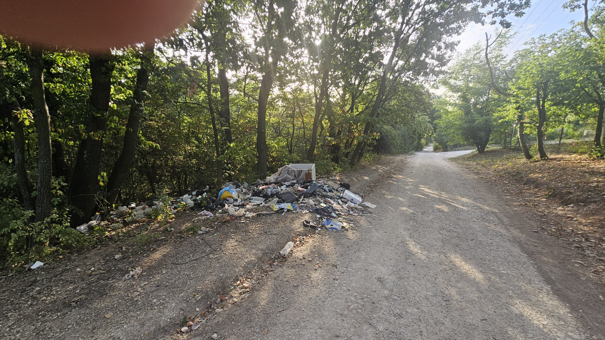 Bitang nagy szeméthalom van Tetőfedő utcában, a Művezető utcai sarok után.
