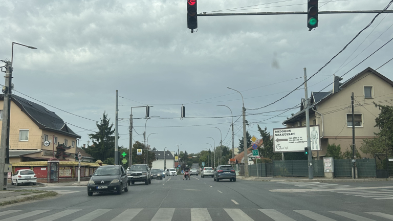 A Tavas játszótérnél rendszeresen pirosat ad, és a kanyarodósáv zöld jelzése olyan rövid ideig tart, hogy egyszerűen fizikailag lehetetlen odaérni — a kb. 250 méteres szakaszra nincs elég idő. Így mindig egy teljes ciklust kell várni, ami nemcsak idegőrlő, de felesleges torlódást is okoz. Ha csak +15 másodperccel hosszabb lenne a kanyarodó zöld, sokkal gördülékenyebben menne a forgalom.