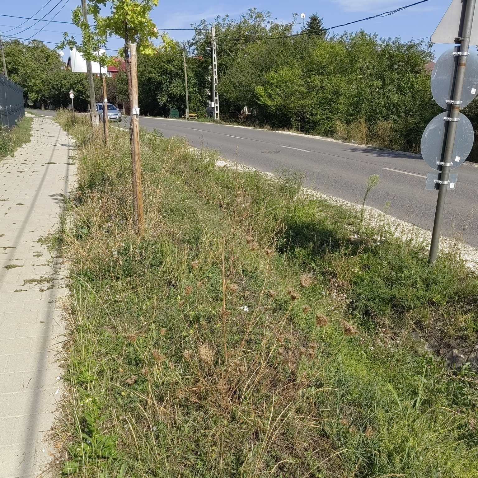 Érden, a Törökbálinti úton, a Bem tértől felfelé nincs lekaszálva a gaz , az árok is gazos, gyomnövényes.