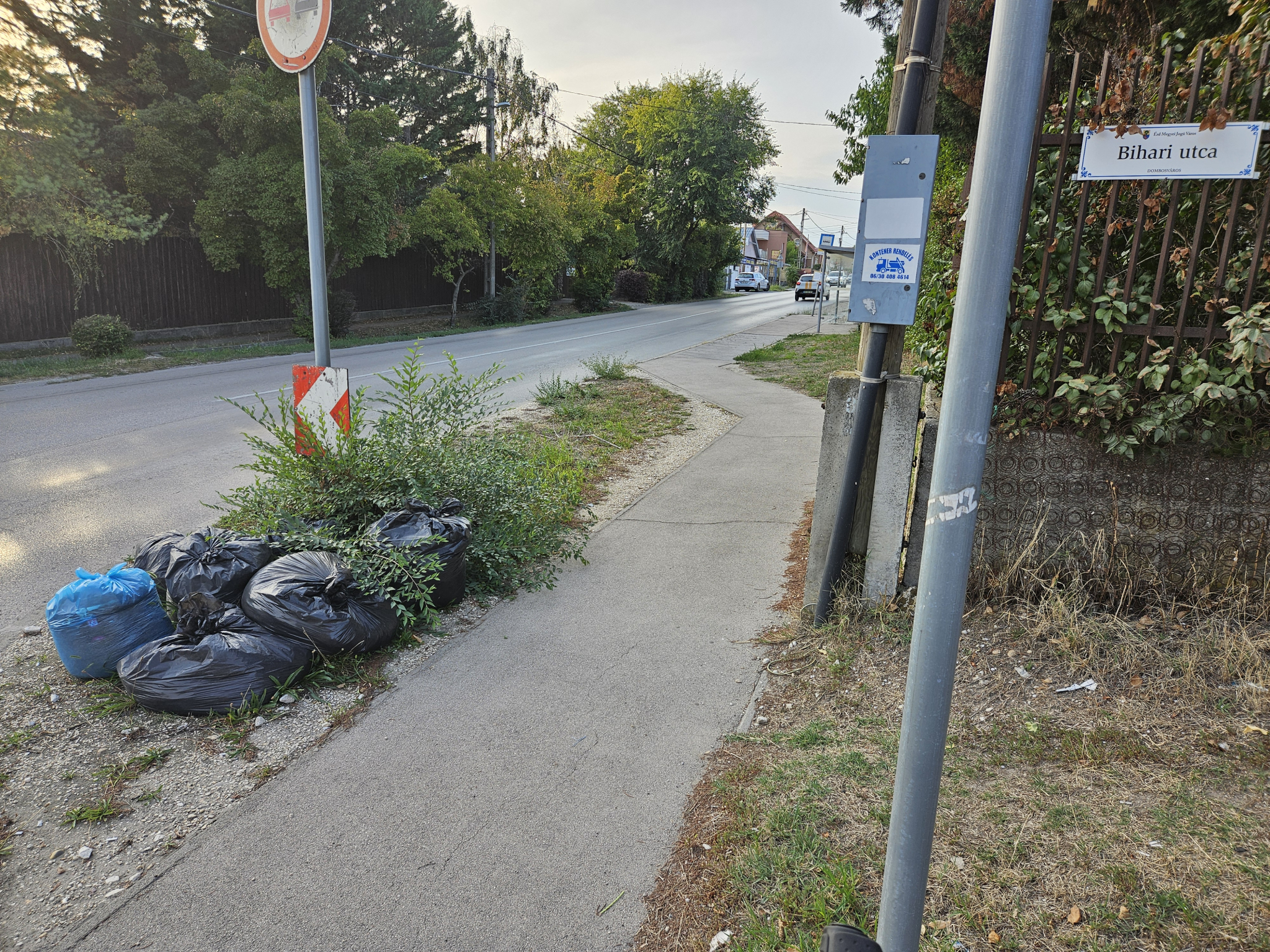 A Lőcsei-Bihari sarkán hét ismeretlen eredetű és tartalmú szemeteszsák.
