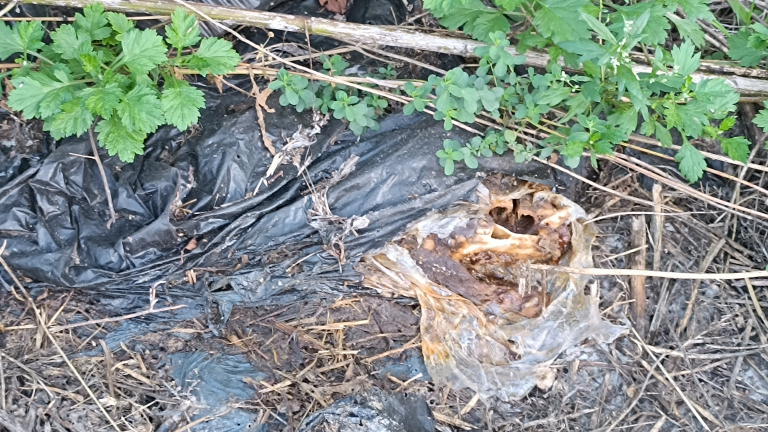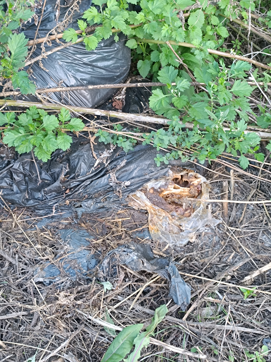 A zsàkokban büzös tartalom, talàn àllkapocs ,ami làtható.