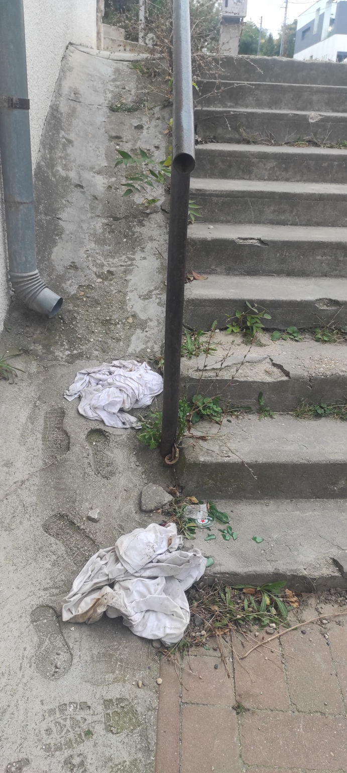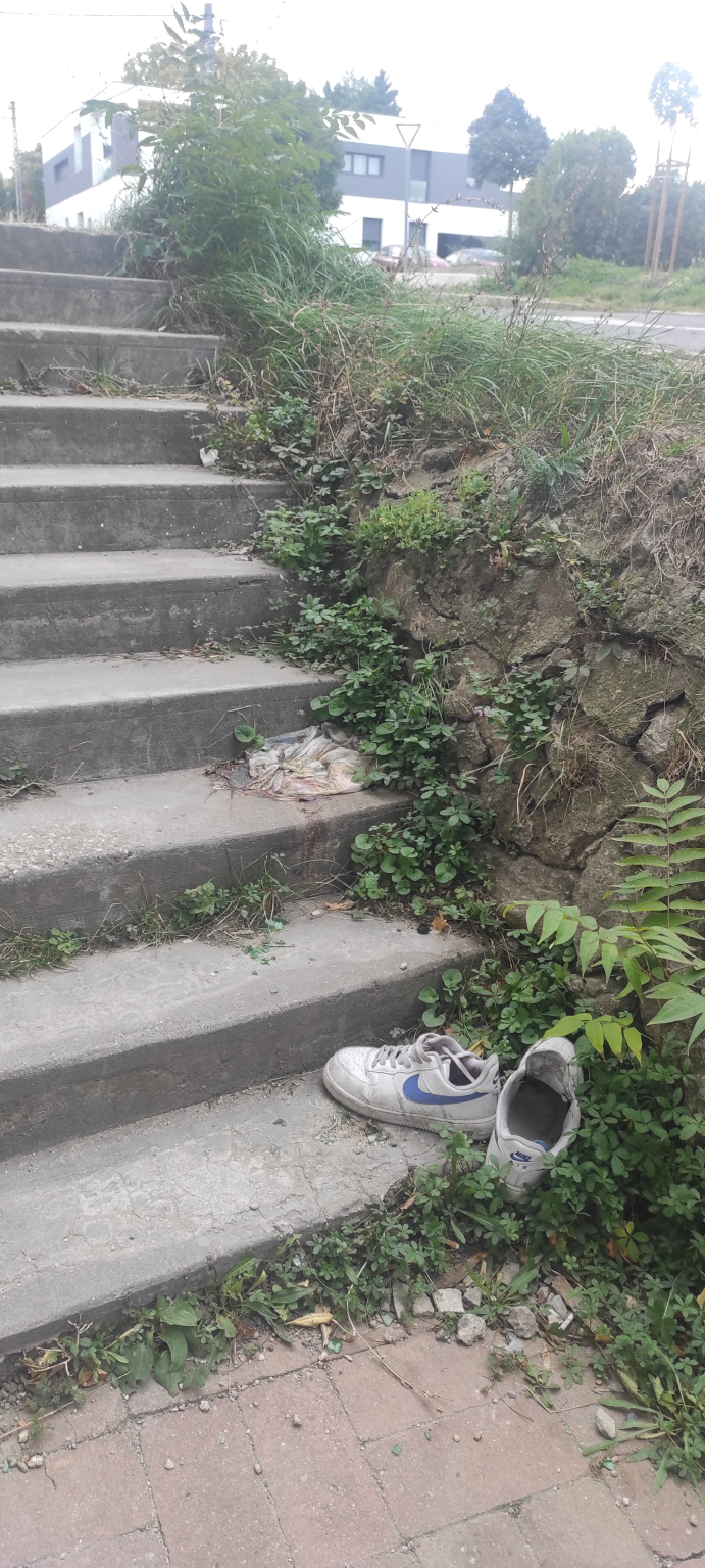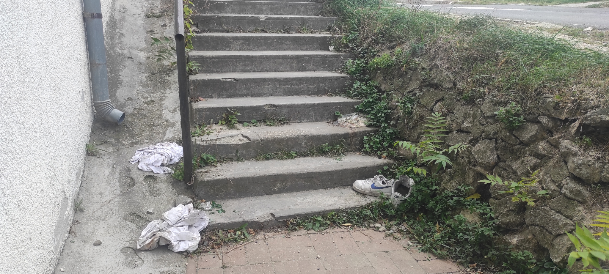 Az érdi zeneiskola lécsőjén nyár eleje óta gyűlnek a hajléktalanok által ott hagyott ruhák és ételek. A zacskóban lévő fél dinnye teljesen elfolyósodott ennyi idő alatt, a ruhák kissé viseletesebbek lettek, az üvegdarabok is csak szaporodtak a lépcső alján. Egyedül a műbőr Adidas cipő bírja az aszályt és a mindennapok sodrát, június óta mit sem amortizálódott. Ovis és iskolás gyerekek kerülgetik nap mint nap ezt a szemétkupacot. Hiába városközpont, frekventált hely, valahogy a közmunkások nem járnak arrafelé hónapok óta... Az árkot is tisztítani kéne legalább kétévente egyszer, lassan erdő lesz a helyén.
