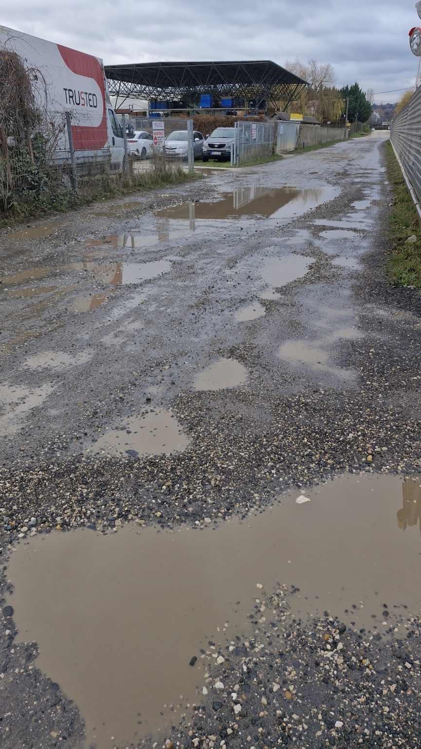 Érden a Piroska utcában, az Erika és az Elvira utca közötti szakaszon rengeteg a kátyú.