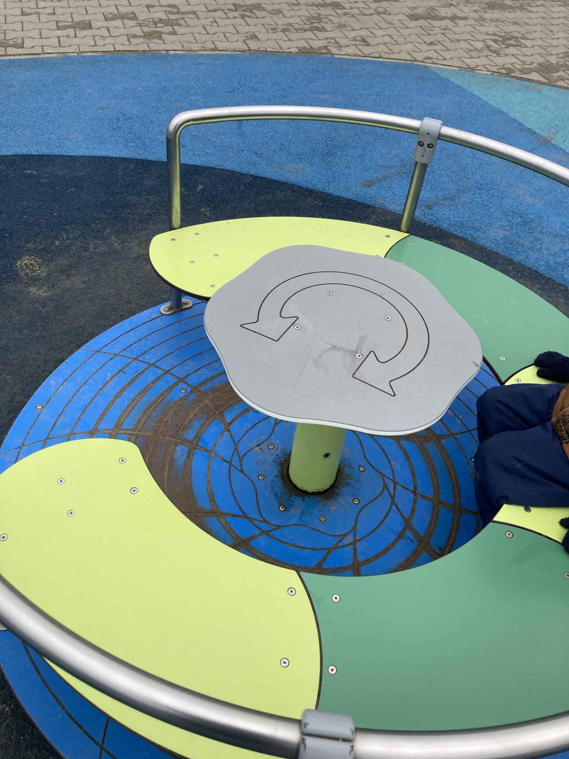 A fotón szereplő játék középső eleme, aminek fixen kellene állnia, elforog. Így nem tudják a gyerekek forgatni magukat.