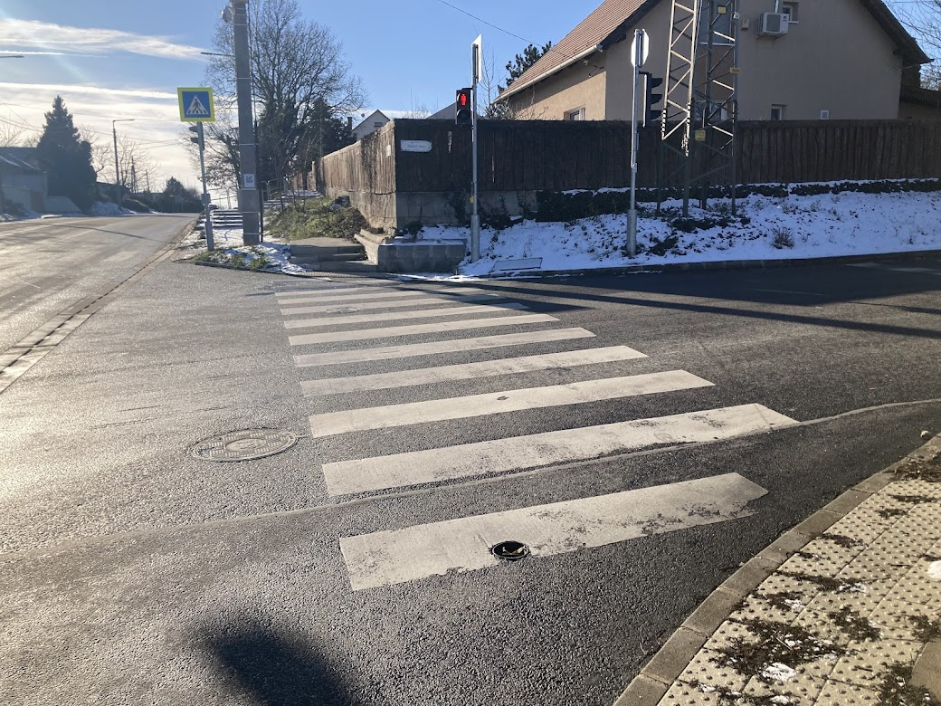 Az gyalogos átkelő vonalában törött közműfedél