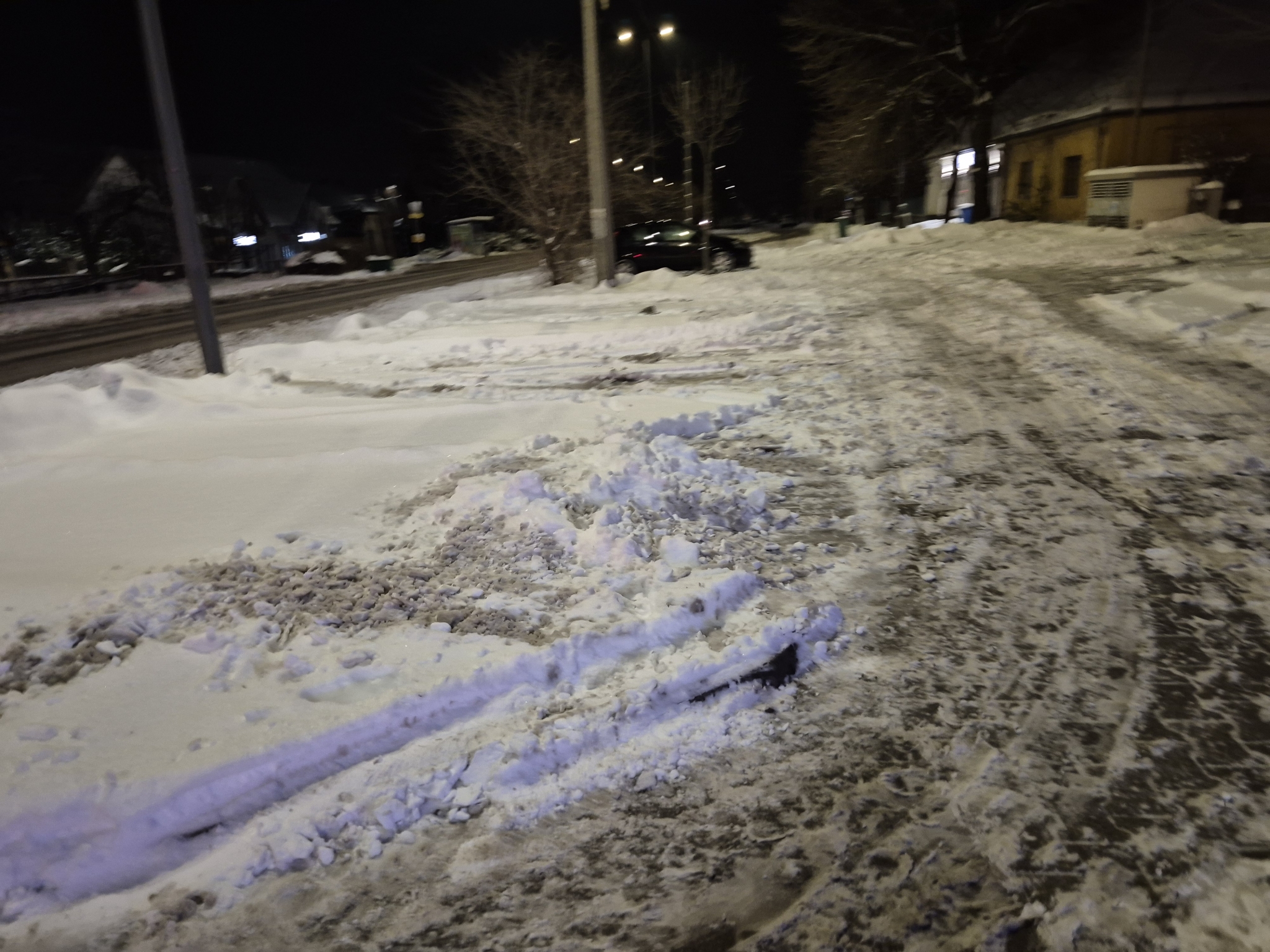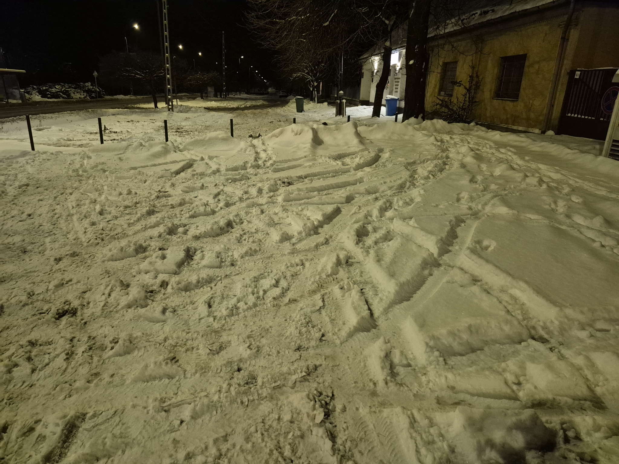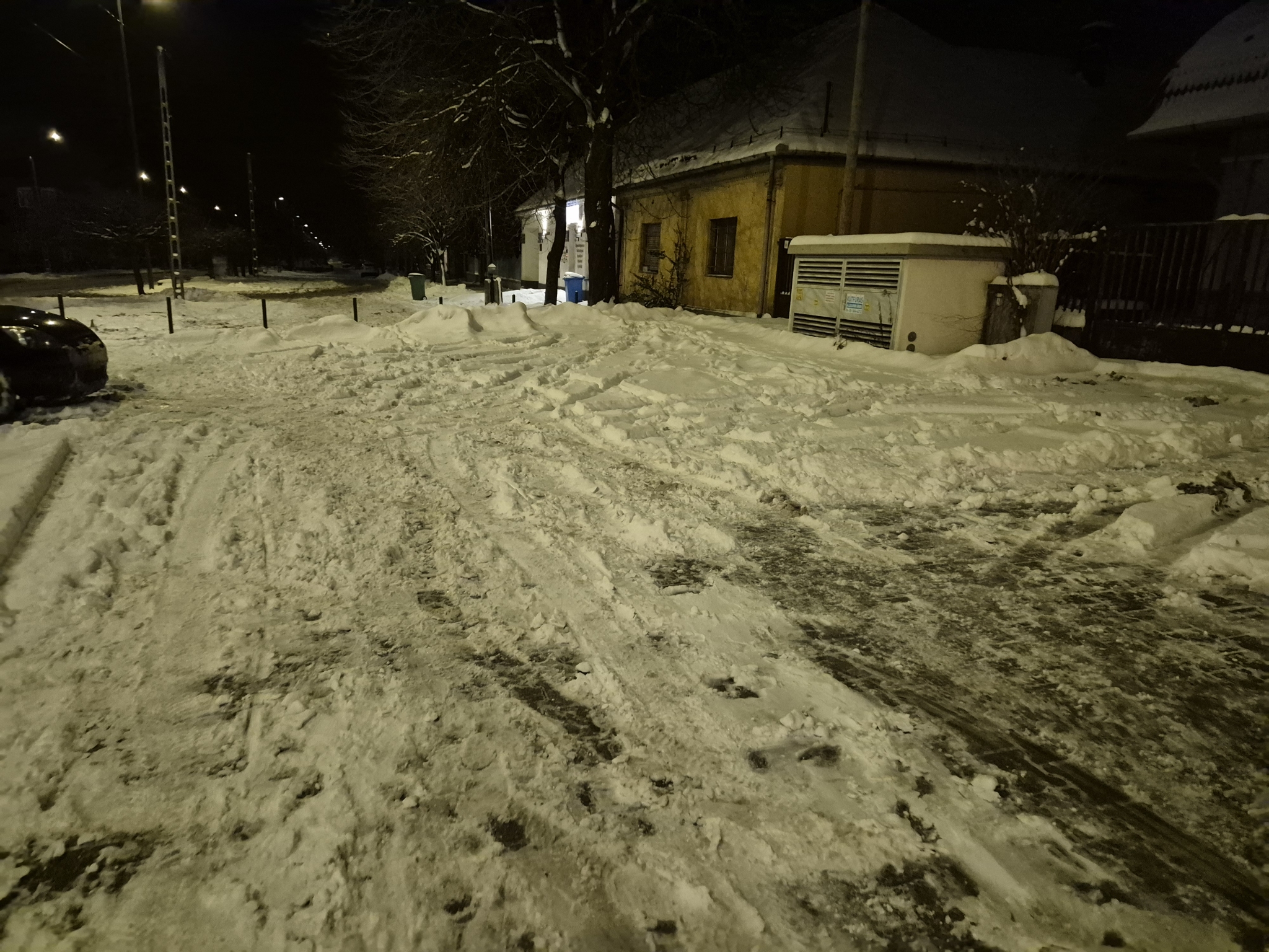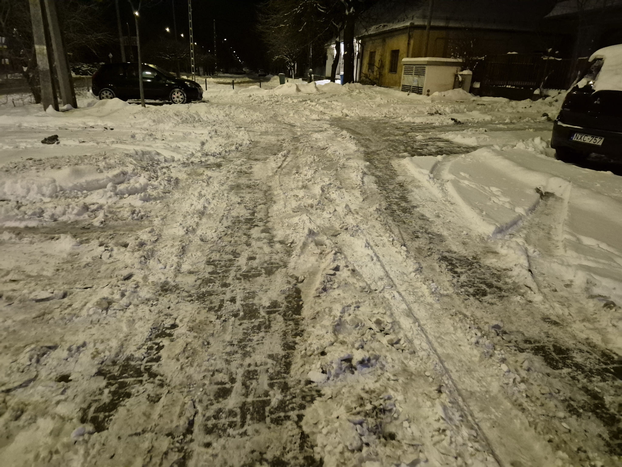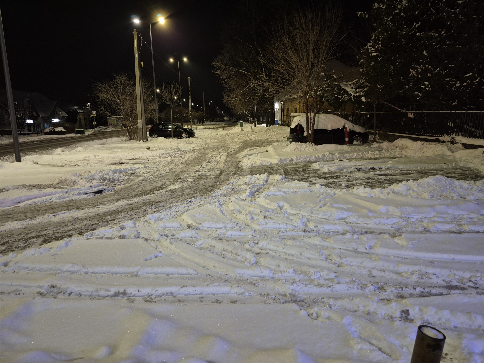 Az Érd,Felső utcában a régi rendőrség előtti parkoló havas, jeges megnehezítve az arra járó gyalogosok az ott parkoló autók közlekedését.
