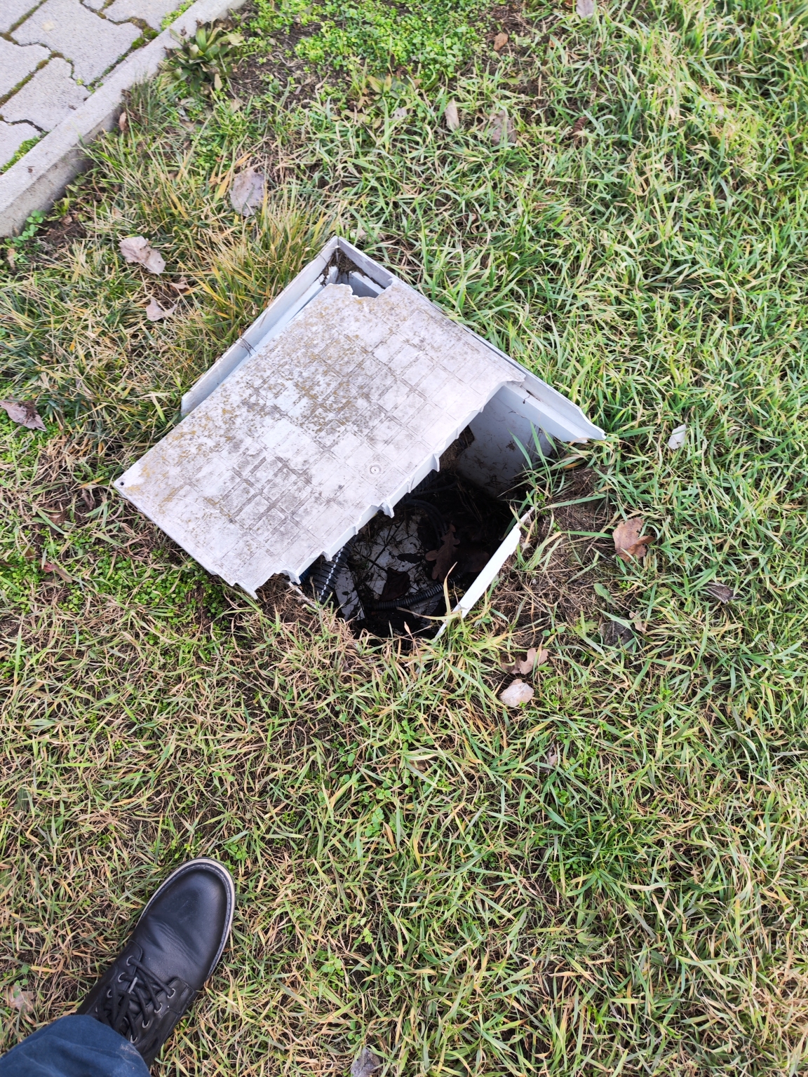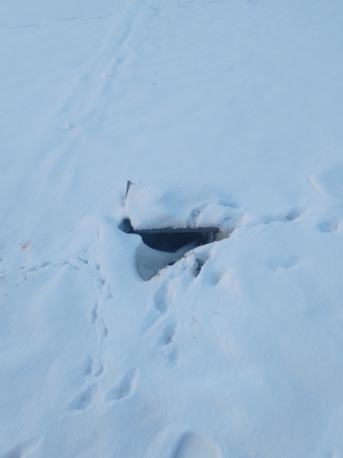 Papiföldeken félrecsúszott vagy sosemvolt aknába beleesett a kislányom, nagy hóesés betakarta, szerencsére nem lett baj. Most látszik is a lyuk, de ha újra esni fog ismét eltakarja majd.