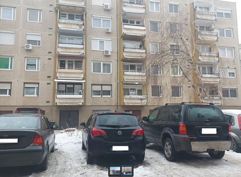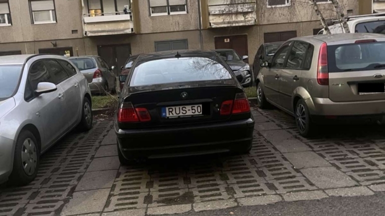 Egy fekete bmv lejárt műszakival (2025.12.17-én) parkol a lakótelepen az 1/B szám előtt.