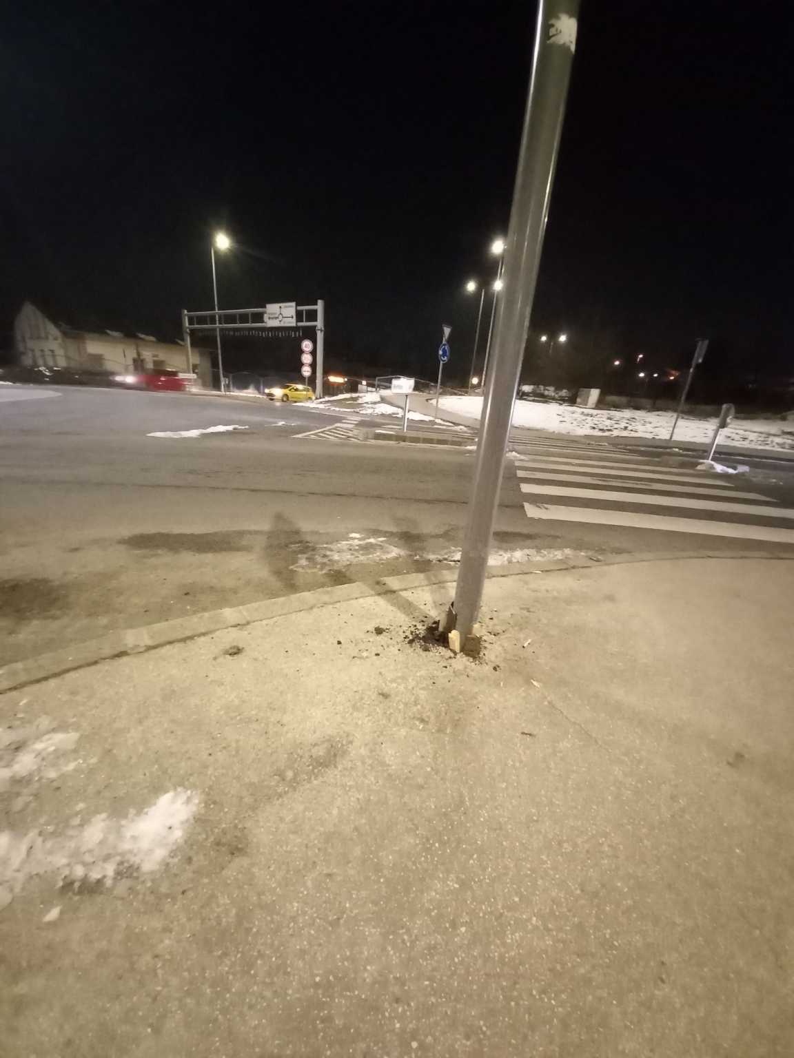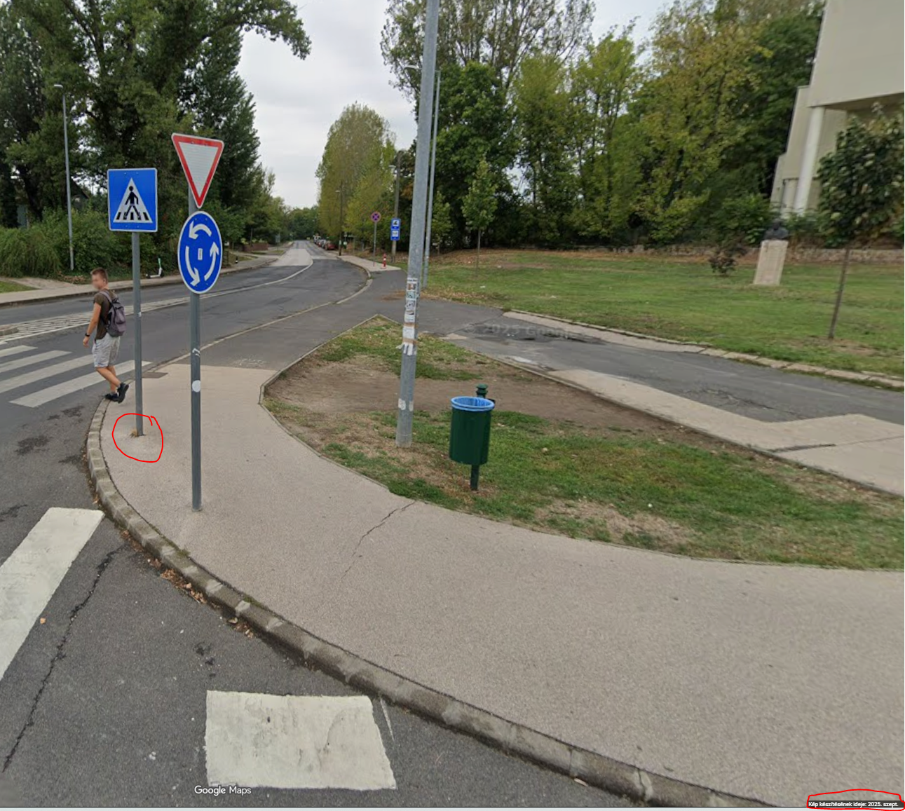 A Széchenyi téren, az aluljáró felé vezető zebra VMG felőli oldalán levő gyalogos átkelő jelző kresz tábla ki van lazulva, már hónapok óta fa ékekkel van kitámasztva (lásd a 2025 szeptemberi google maps képet). Mostanra már egyre több éket kellett alkalmazni, hogy a tábla úgy-ahogy függőlegesen álljon. Kérném a mielőbbi javítást, mielőtt a tábla kidőlne.