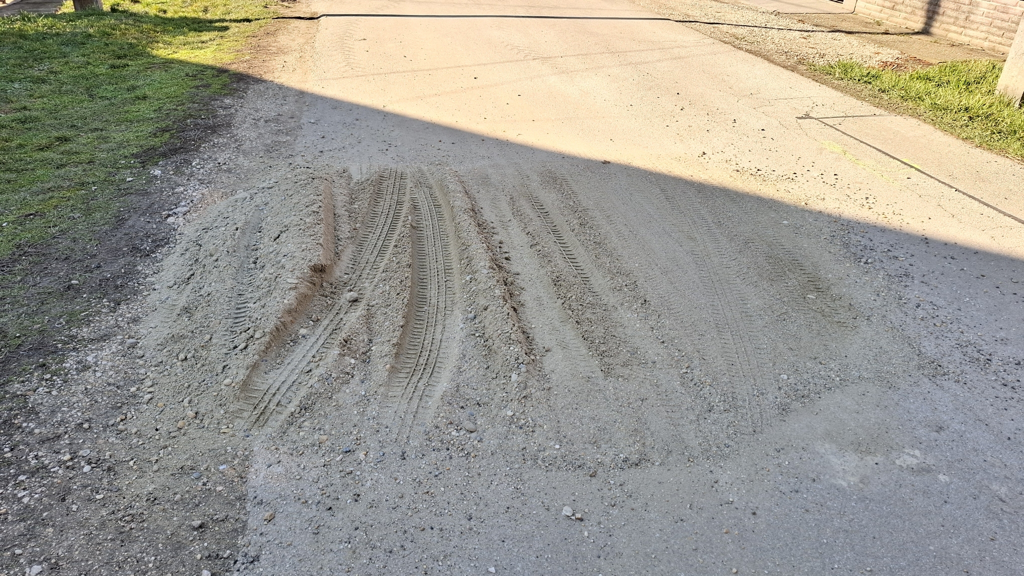 Érd, Fogoly utca 60 előtt valaki az út közepén lévő gödörbe egy nagy halom sódert öntött, ami igencsak veszélyes.