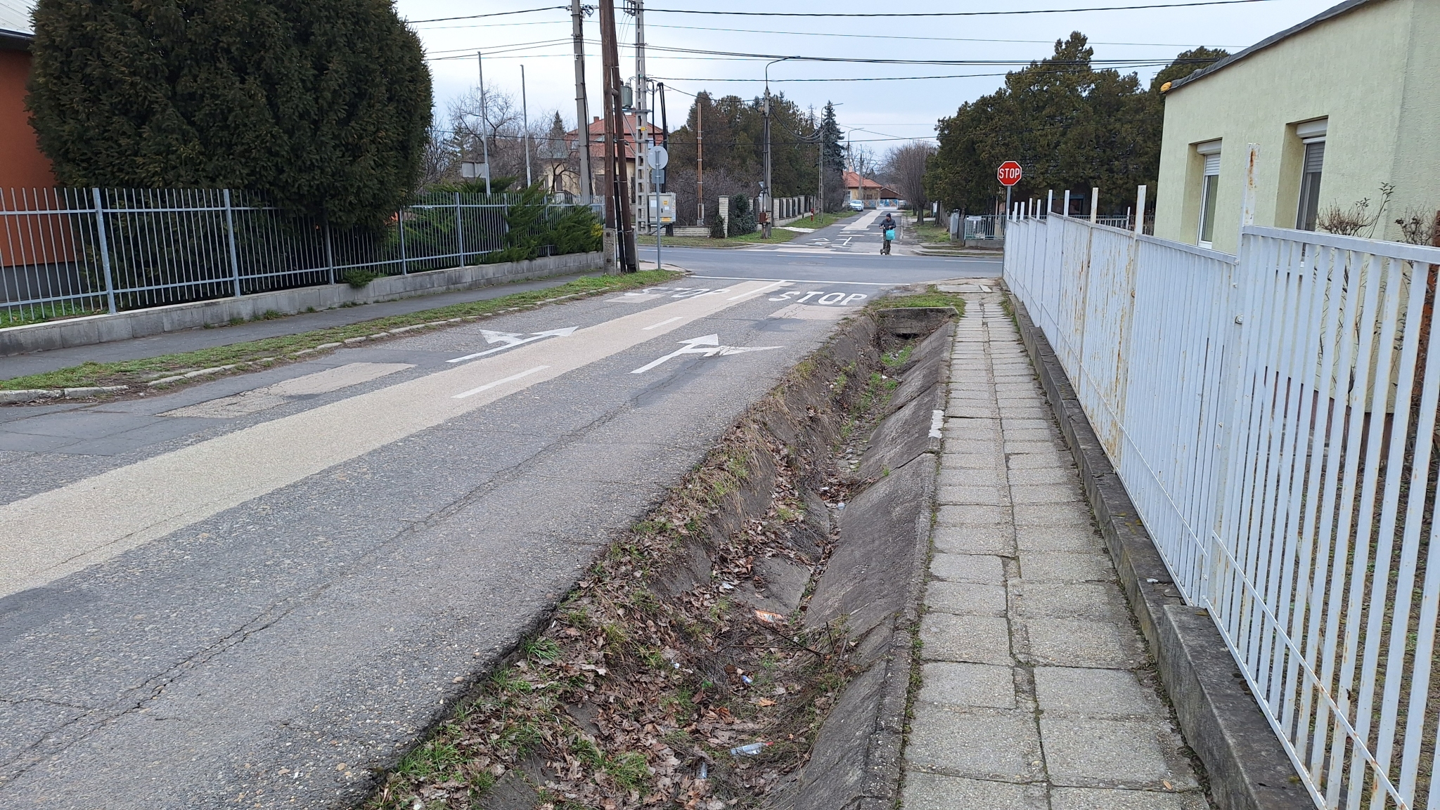 Intéző utcában a Velencei úti kereszteződésben újból felfestették a kanyarodást jelző nyilakat. Először lefelejtették az egyenes haladást jelző nyilat, aztán viszont mindkét sávban felfestették. Ez azért probléma, mert a szemben lévő Elnök utca kétirányú, vagyis irányonként csak egy sáv van, amibe egyszerre két, egymás mellöl induló autónak elég nehéz a kereszetződésen belül besorolnia. A bal oldali sávban lévő egyenes haladást jelző nyilat el kellene tüntetni.