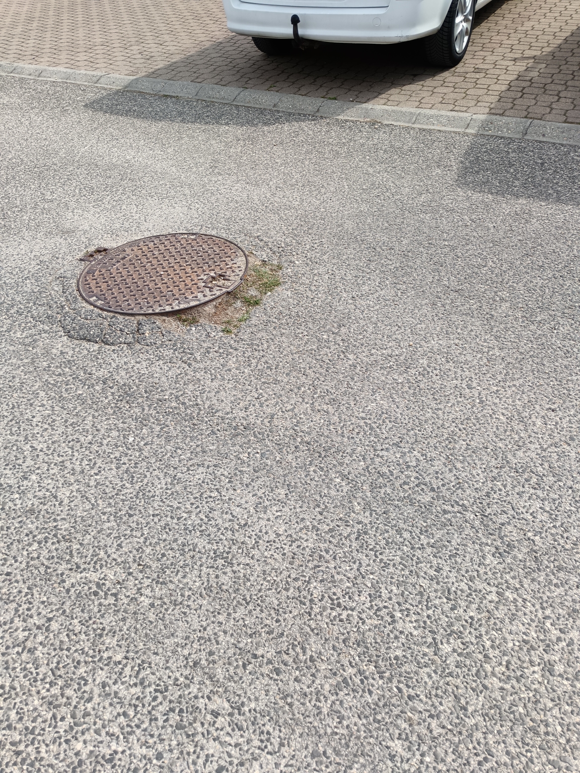 Csatornafedél mellett megsűlyedt aszfalt