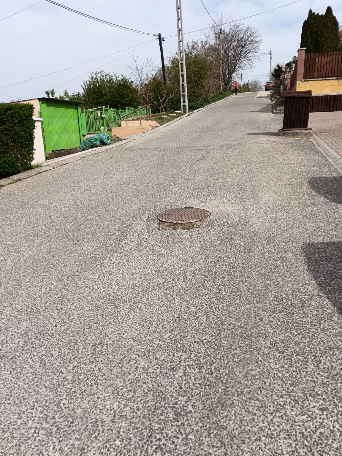 A mellékelt képek nem adják vissza a megsűlyedés mértékét, de a csatornafedél mellett kb. majd egy méter hosszan megsűlyedt az aszfalt. Ami a képen látható irányból kikerülhetőbb, a a lejtőn lefelé gurulva szinte észrevehetetlen és nagyot tud ütni a jármű futóművére.