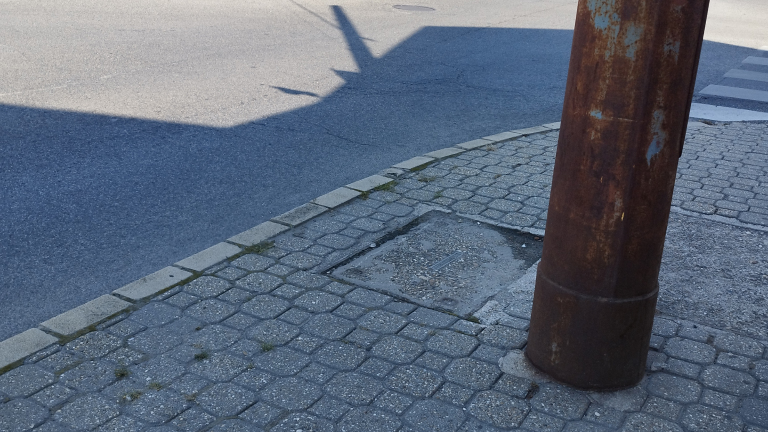 A Madách Imre út - Bajcsy Zsilinszky út sarkán lévő forgalomirányításos fedlap megsüllyedt.