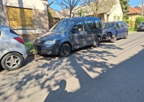 Esztergomban a Beatrix királyné/Sugár utcában régóta (több hónapja) a közterületen parkoltatnak egy járművet, aminek az első lökhárítója törött, lóg.