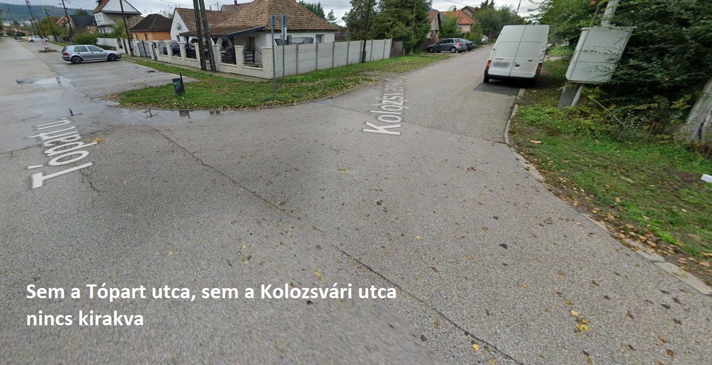 Az általam tapasztalt probléma, hogy kerékpározva az új kerékpárúton Esztergomból Esztergom-Kertváros Pala-partig arra voltam figyelmes, hogy végig, minden keresztutcában hiányoztak a közterületnév-táblák, így nem tudtam, hogy pontosan hol vagyok.