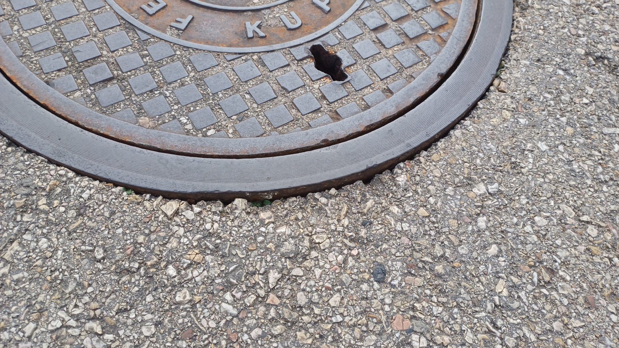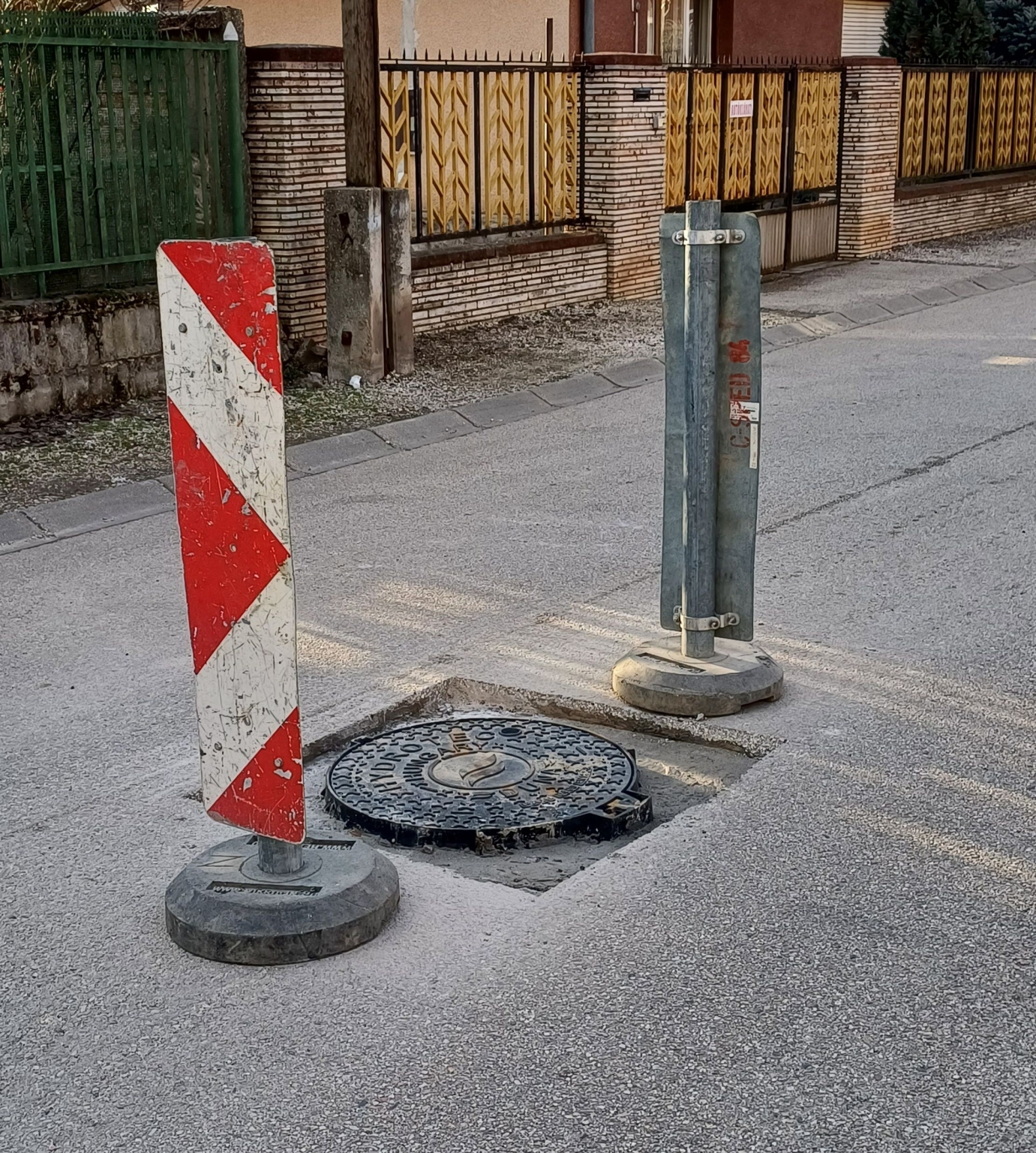 Az Esztergom-Kertváros, Nyitrai u. 60. előtti csatornafedél körül az aszfalt tönkrement, a keret nem támaszkodik stabilan. A helyijáratos autóbuszok alatt áthaladásakor nagyot csapódik, de a személyautók sem tudják minden esetben kikerülni. Nem csak a csapódással járó zaj a probléma, hanem a folyamatos rázkódás is, ami miatt a lakóházunk csatornafedél felé eső sarka repedezni kezdett. Szeretném a csatornafedél kijavítását, mielőtt a buszok teljesen tönkreteszik az utat és a környező ingatlanokat.