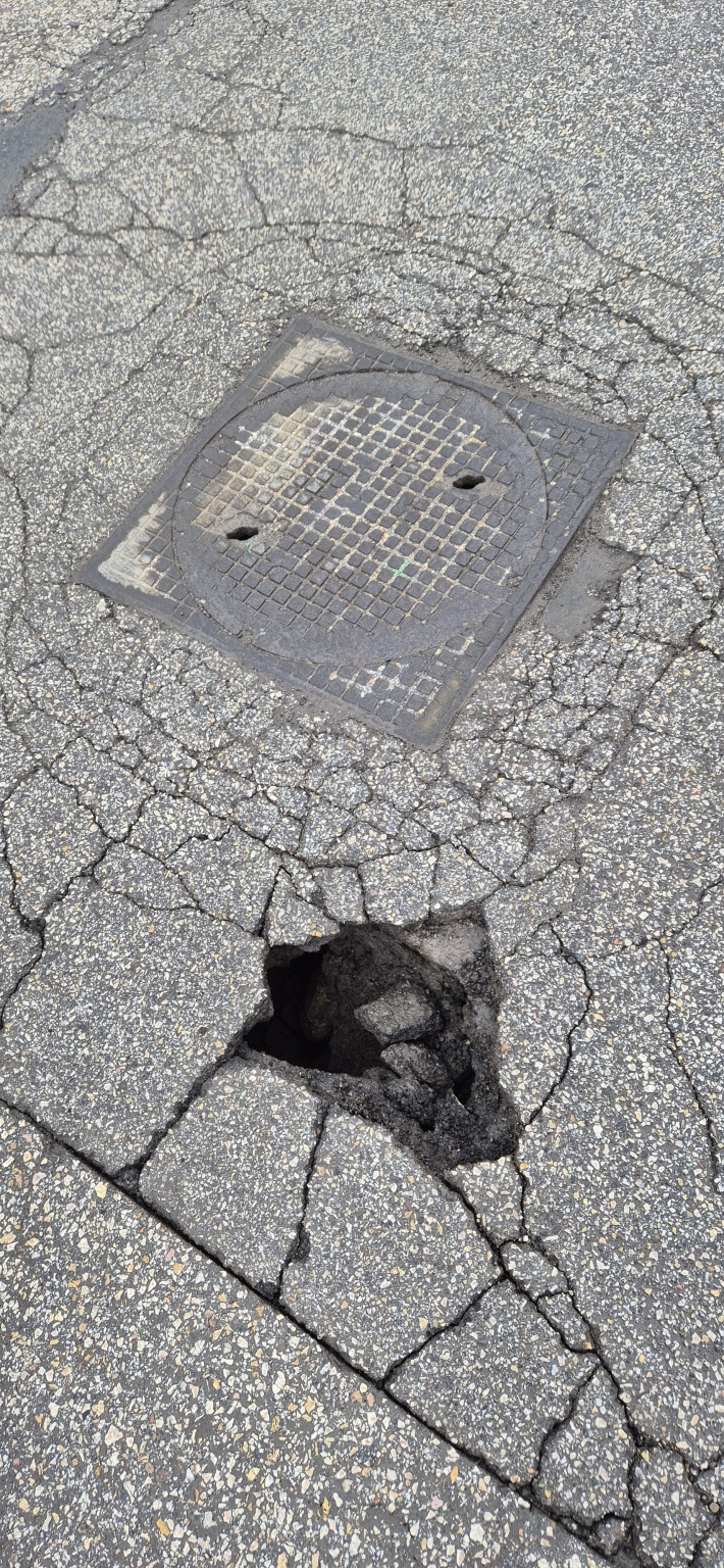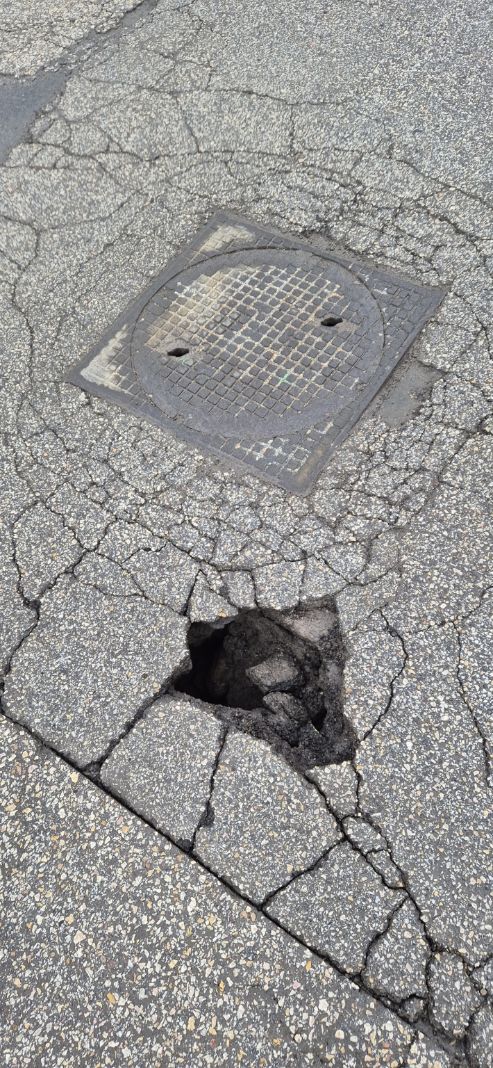 Ma reggel futottam bele egy nagyobb kátyúba, ami szerintem eddig nem volt ott. Mivel csatornafedél közelében van, aggódtam, hogy esetlet balesetveszélyes vagy beomlás veszélyes lehet