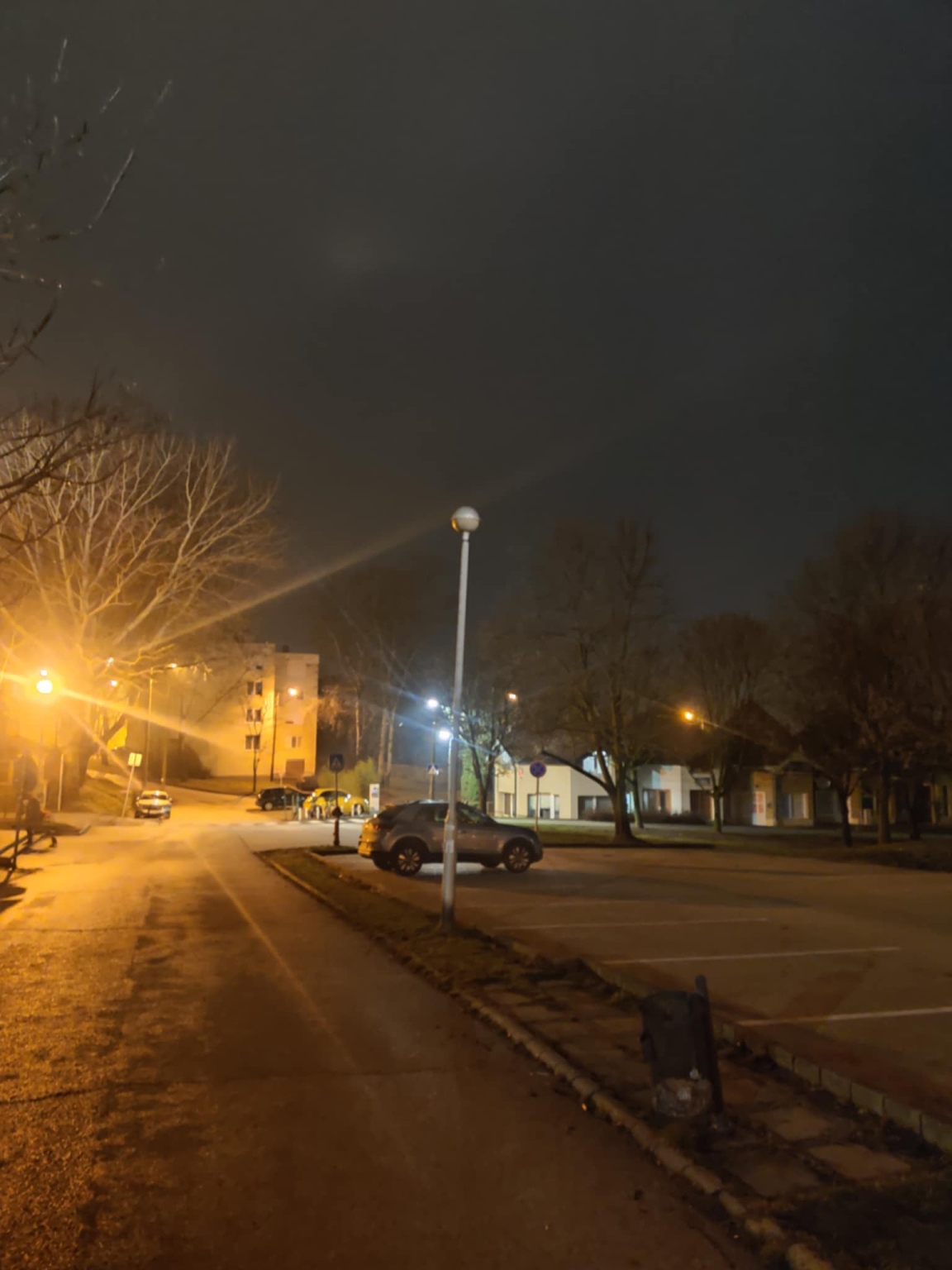 A városi könyvtár melletti parkoló két végén, kiégett két lámpa.