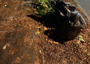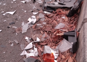 Egyrészt balesetből származó autóalkatrészek hevernek a bozótban, másrészt vele szemben az árokban bicikligumi is van.
