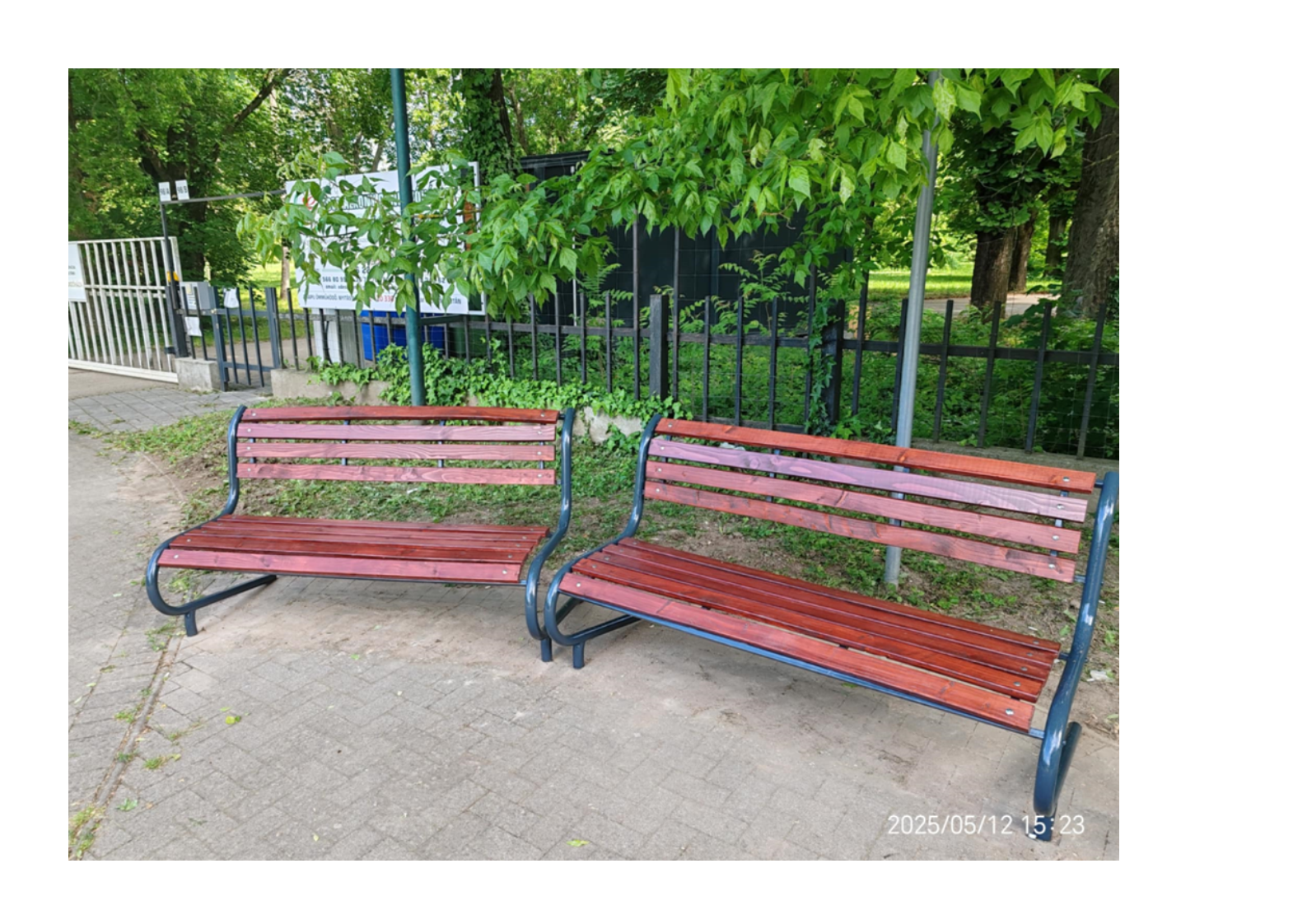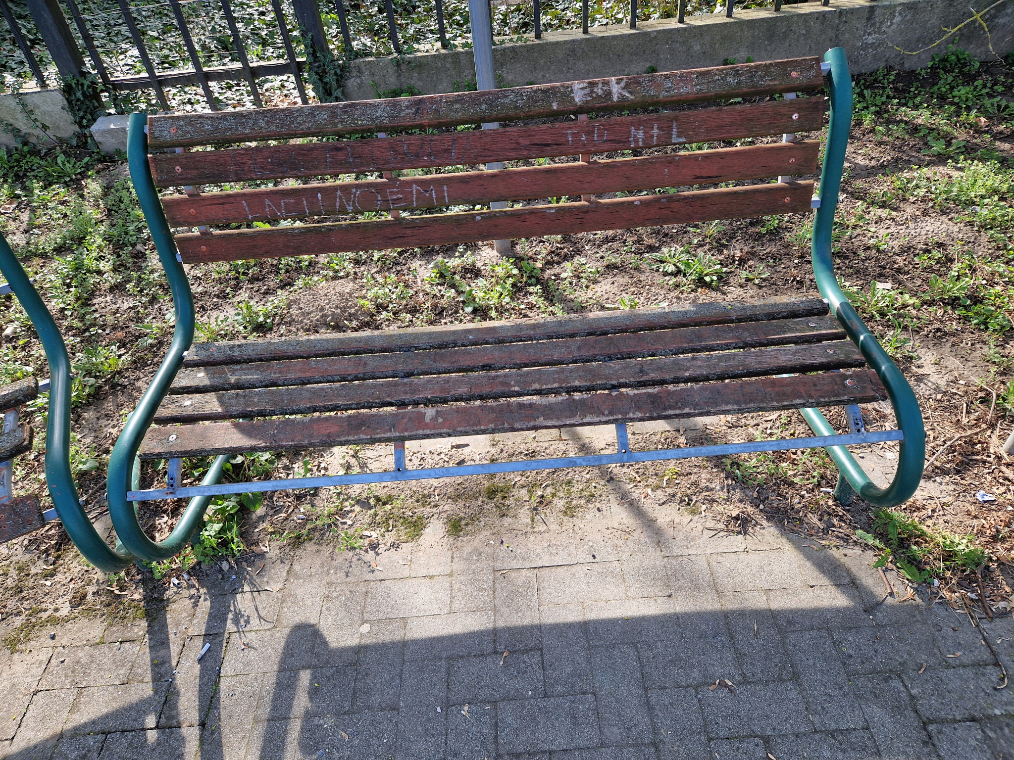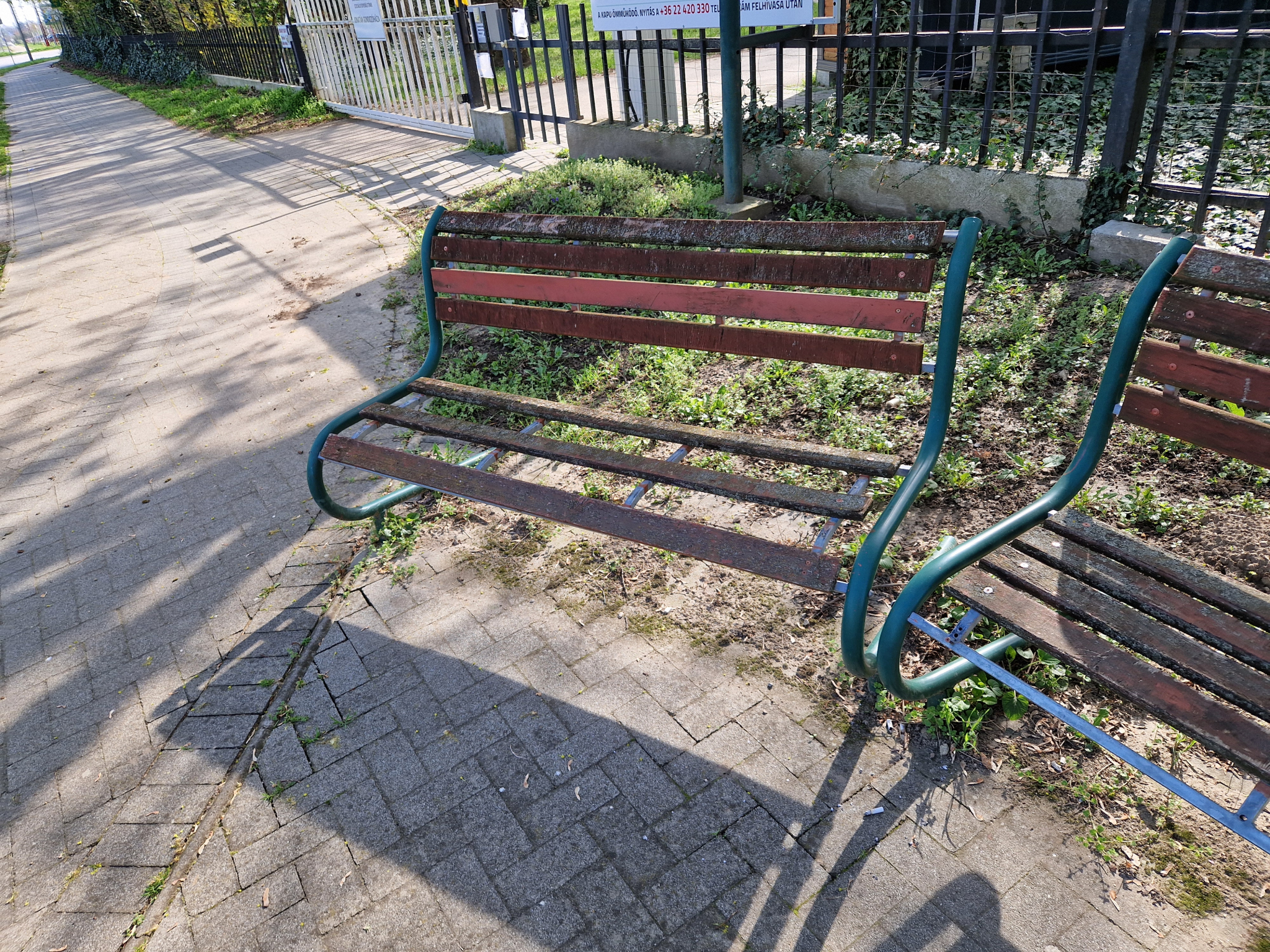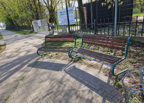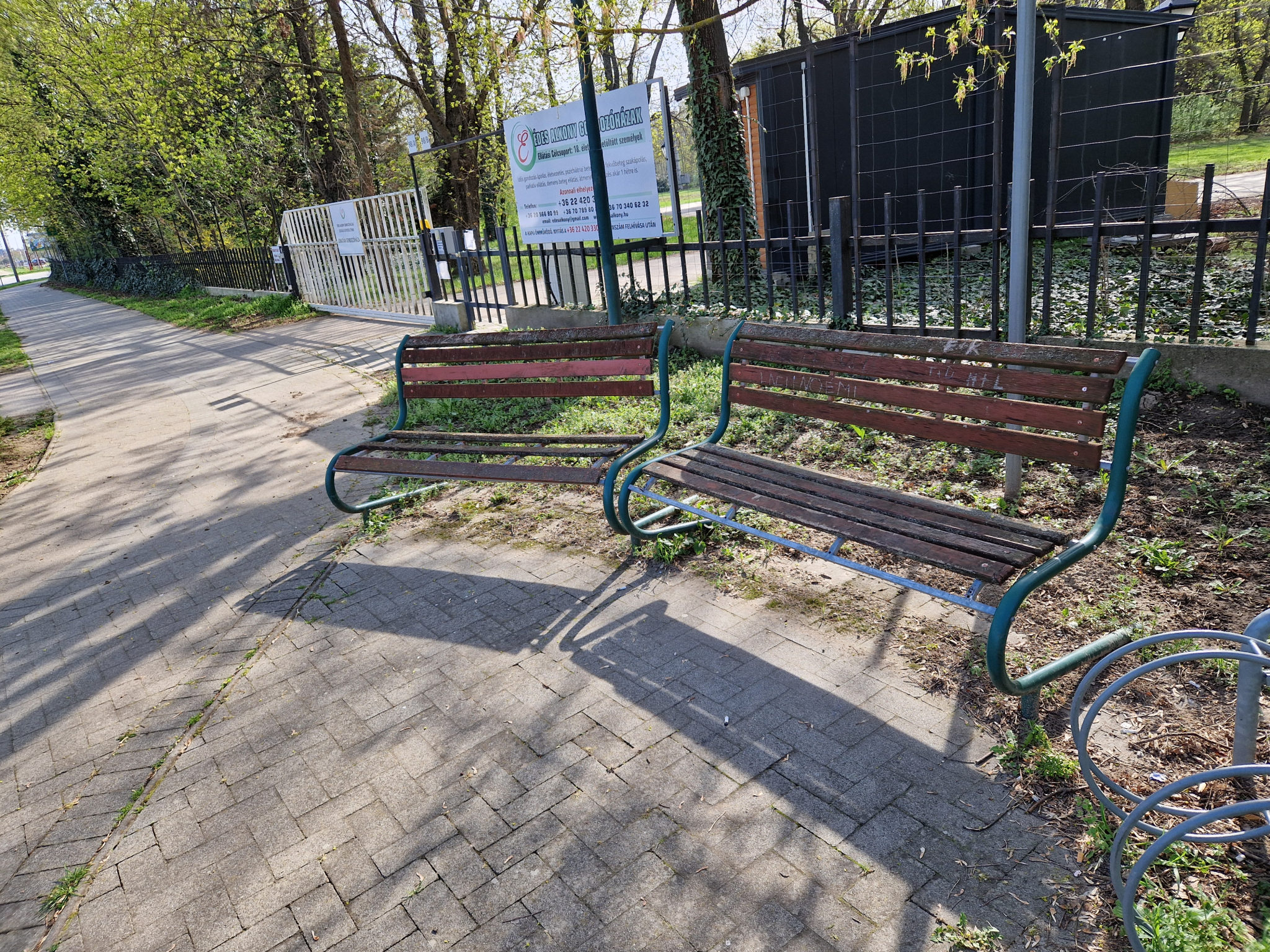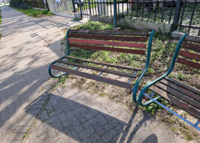 A képen látható 2 pad megrongalodtak az édes alkony idősek otthona előtt.