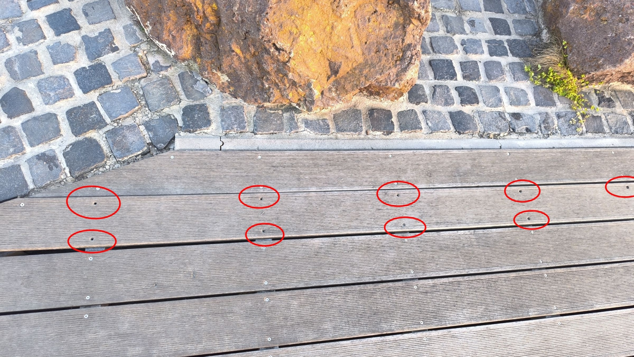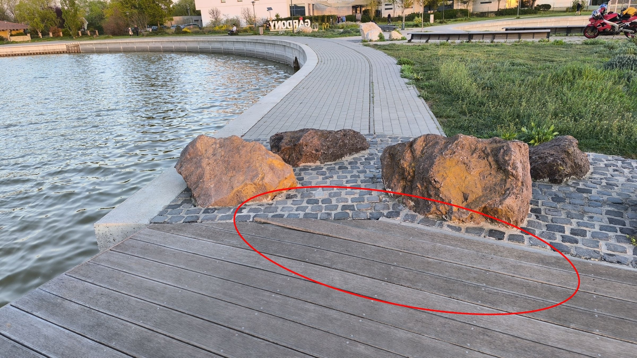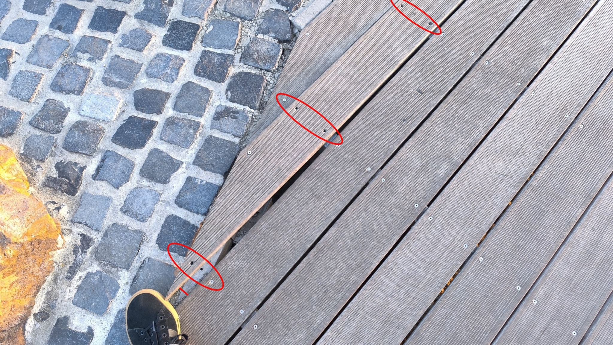 A Hotel Nautis vonalában található móló burkolatának első lécéből kb. 5 pár szegecs hiányzik, mely így a föld felszínétől elemelkedve botlásveszélyes. Kérjük a szegecsek pótlását, a burkolat rögzítését.